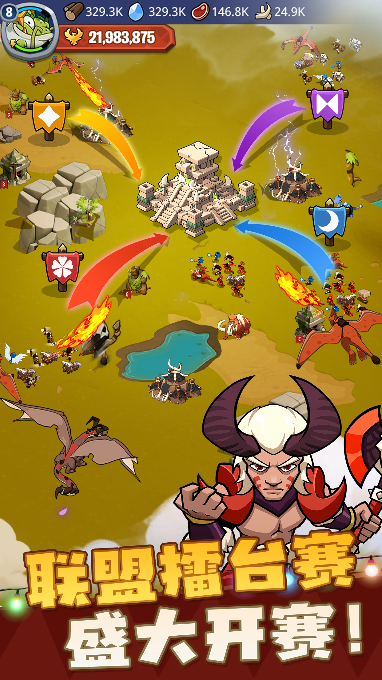 建造城市据点,不断扩张领土,和其他玩家一同竞争,打造一个强大的部落。