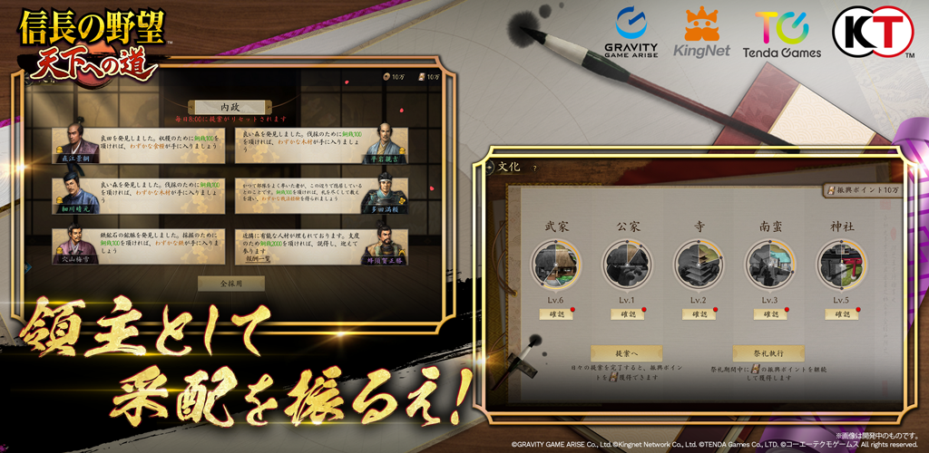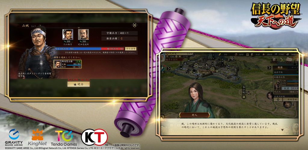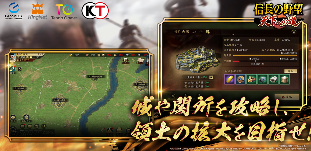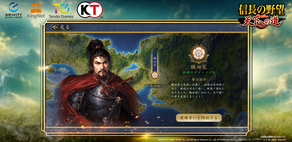 《信长之野望 通往天下之道》是一款获得《信长之野望・天道》官方授权进行开发的 MMO 历史<略模拟游戏。游戏系统由争霸地域」和「不可侵地域」两个区域组成。