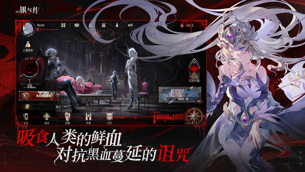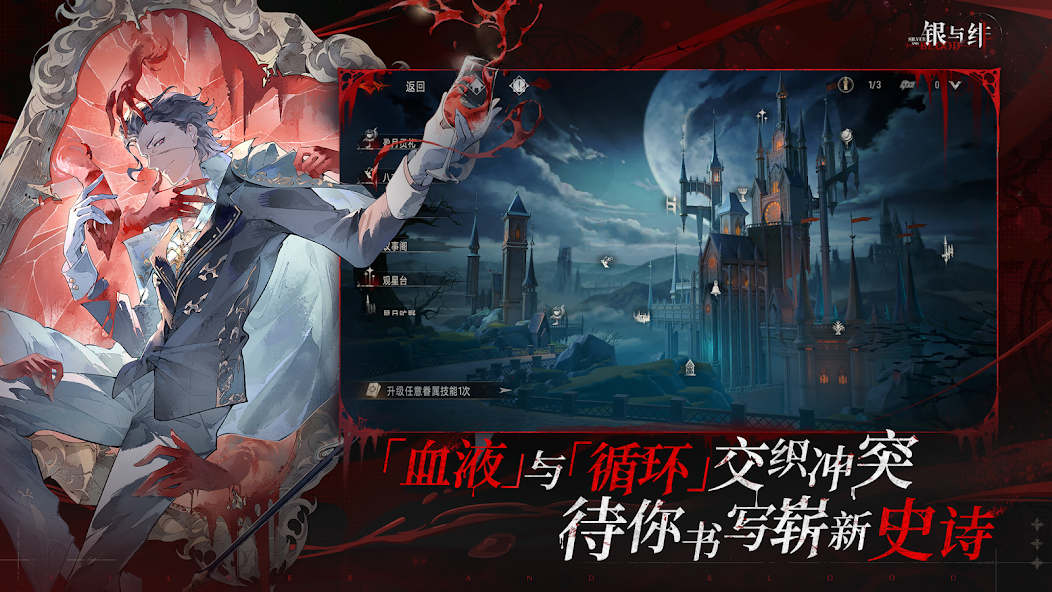 这是一个由无法接受死亡的人们所编织的,关于血液与循环的故事。命运丝线牵引,揭开扣人心弦的剧情;忘却中庭重现,收集古老神秘的遗产;鲜血斗场角逐,历练强大忠诚的眷属;月暮之城营建,化身运筹帷幄的领主。这是一段或许早已既定结局,却仍等待着由你亲自谱写的“银与血”崭新史诗。