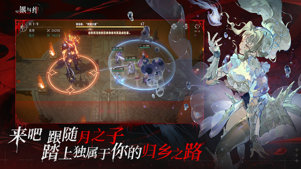 四大阵营,五十余名眷属,每一个灵魂都有着不为人知的秘密,等待你的探索与解读。通过装备、技能、啖魂来提升血能,组建独一无二的“月之子”队伍。在这个意志苏醒的时代,与他们建立羁绊,共同对抗黑暗浪潮,前往神秘美好的月之彼岸。