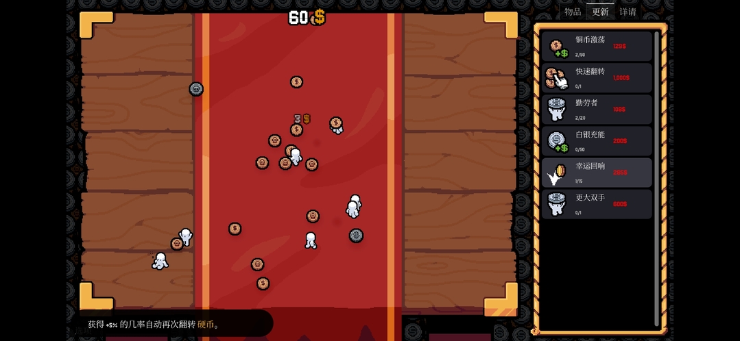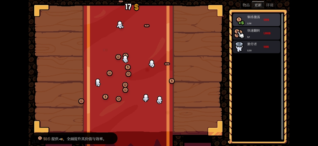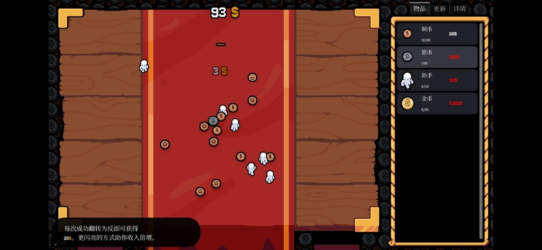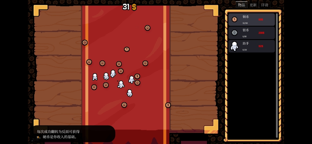 在这里你可以通过抛硬币来赚钱。购买更大更好的硬币,解锁升级,并雇佣小帮手来自动化整个过程,为你处理所有繁琐的抛掷工作。简单、满足、奇异地令人着迷……