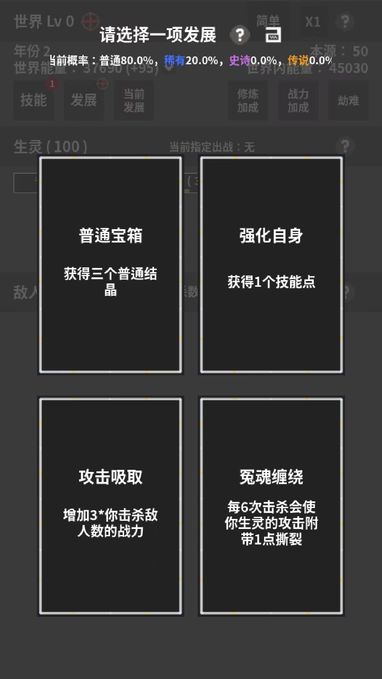 一款模拟修真世界培育生灵、抵御外来敌人入侵的游戏,需要你在培育生灵的过程中,选择合适的发展,抵御越来越强的敌人