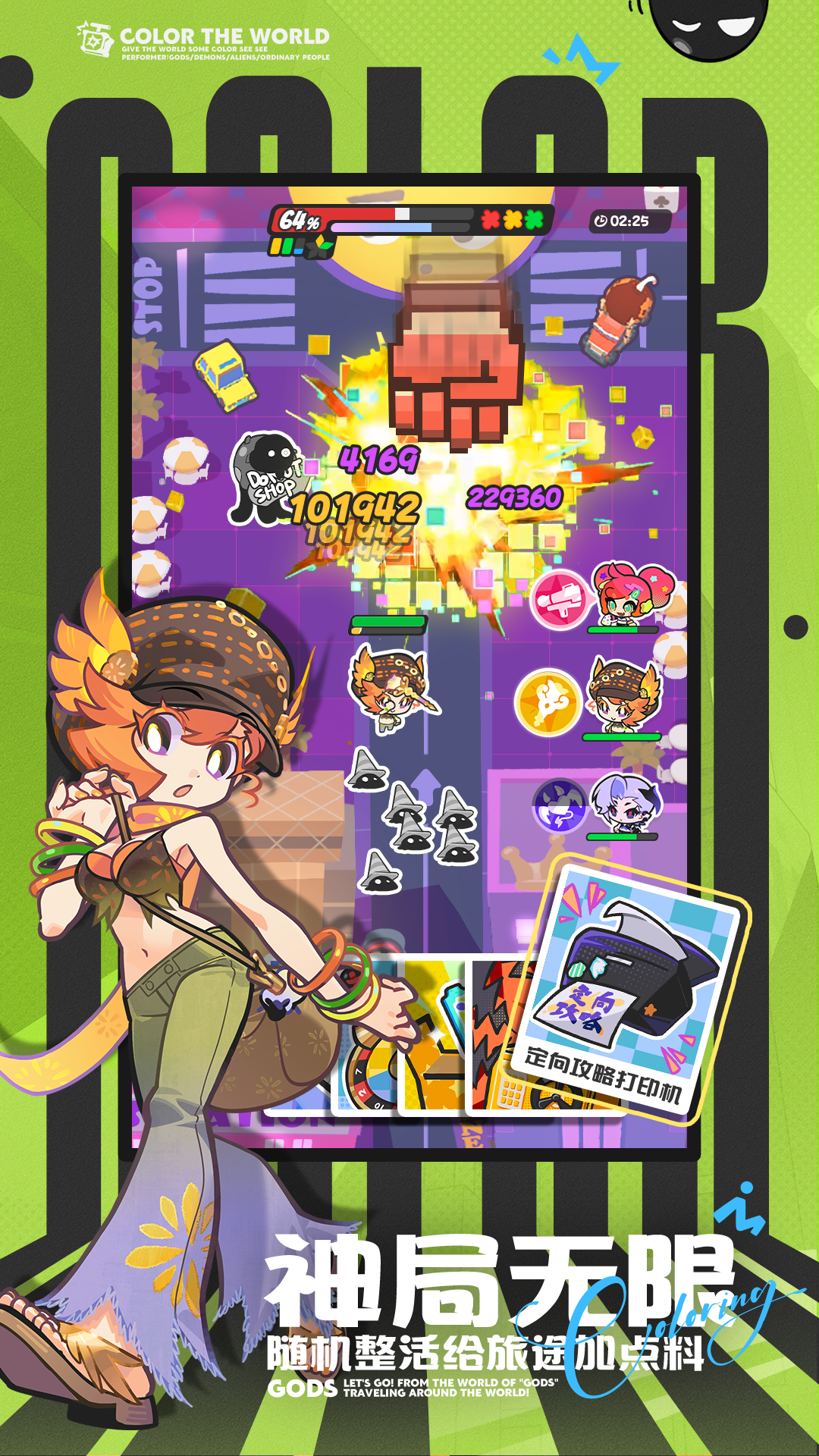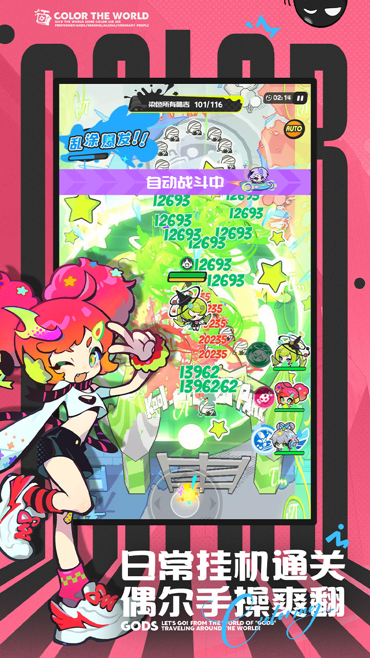 属于“手残党”的神游降临,2分钟即可轻松上手,获得休闲解压的染色体验。与你并肩作战的神魔会自己瞄准她们的目标,即使单手操作,也能够毫无压力感受颜色乱涂的快感,用涂鸦美术的冲击奏响冒险BGM!