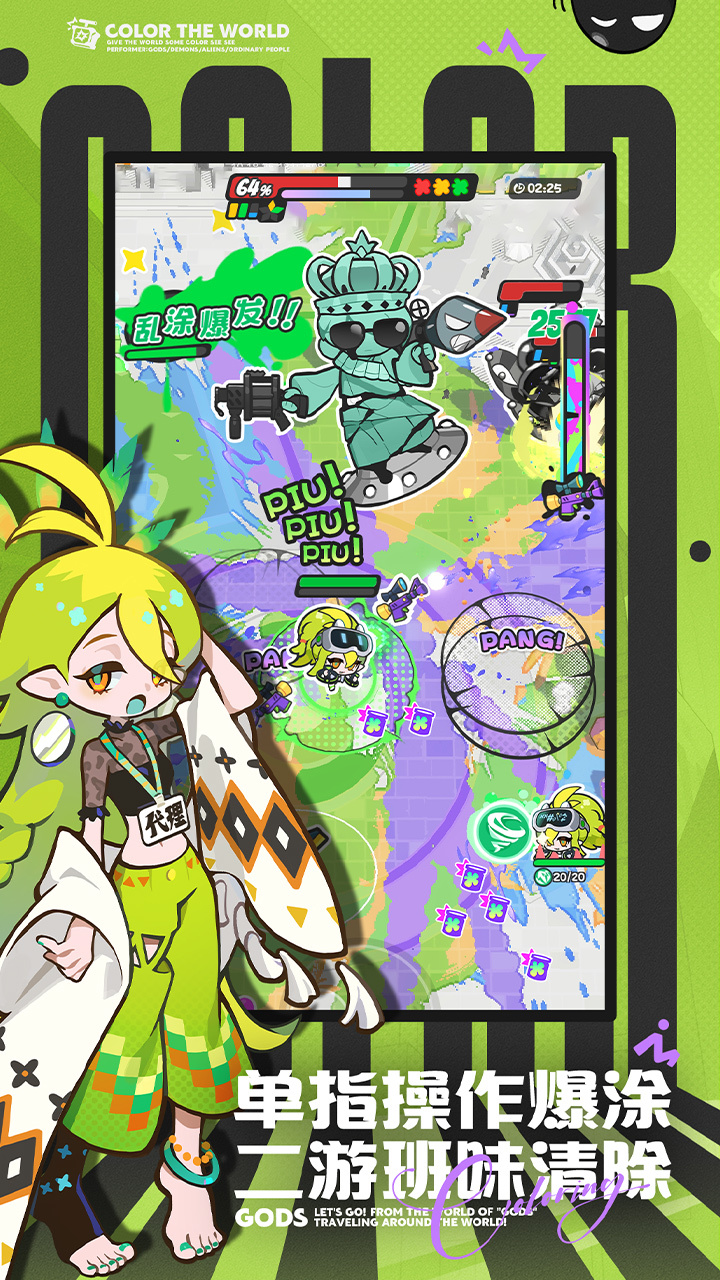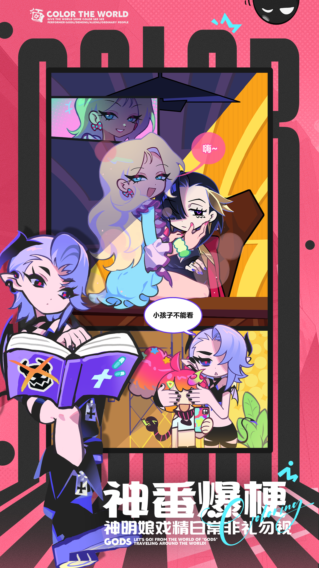 各位伙伴,由于不明来源的外星人入侵,地球正在面临失色危机。神魔委员会今日起正式发起一级警报!号召各位伙伴一起拿起染色武器,为地球找回失去的颜色。打工恶魔和不靠谱神明组成的“染色小分队”已经出发,等待各位的支援。现在,让颜料的喷溅声提醒所有人——管你黑色白色,通通涂成彩色!
