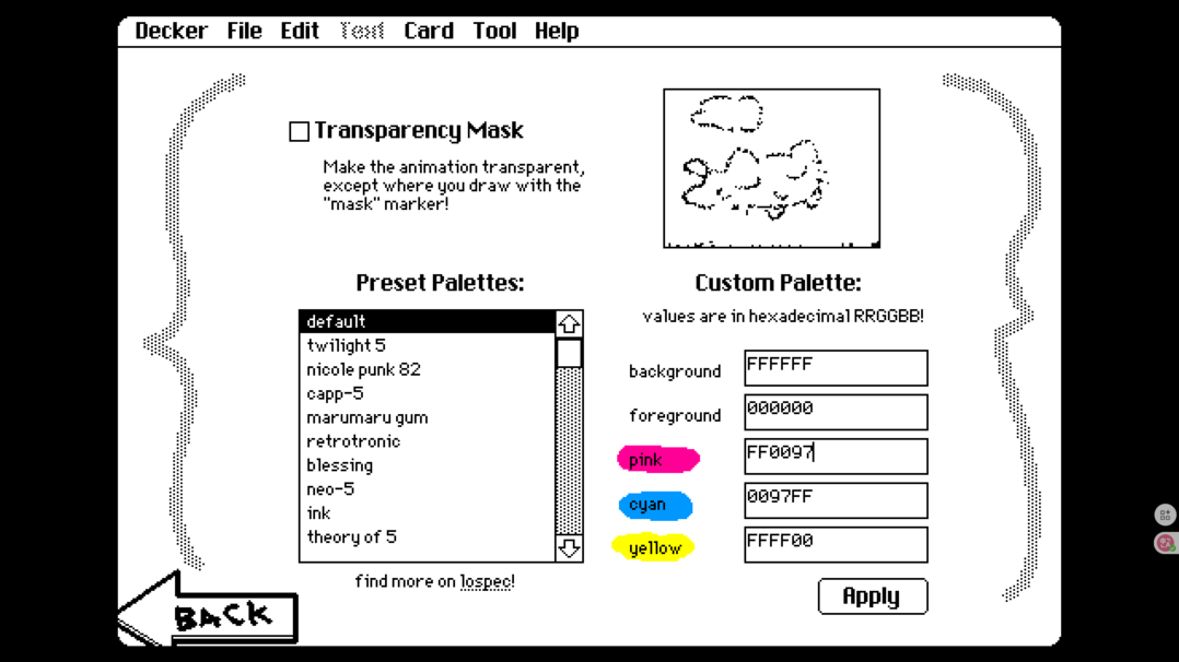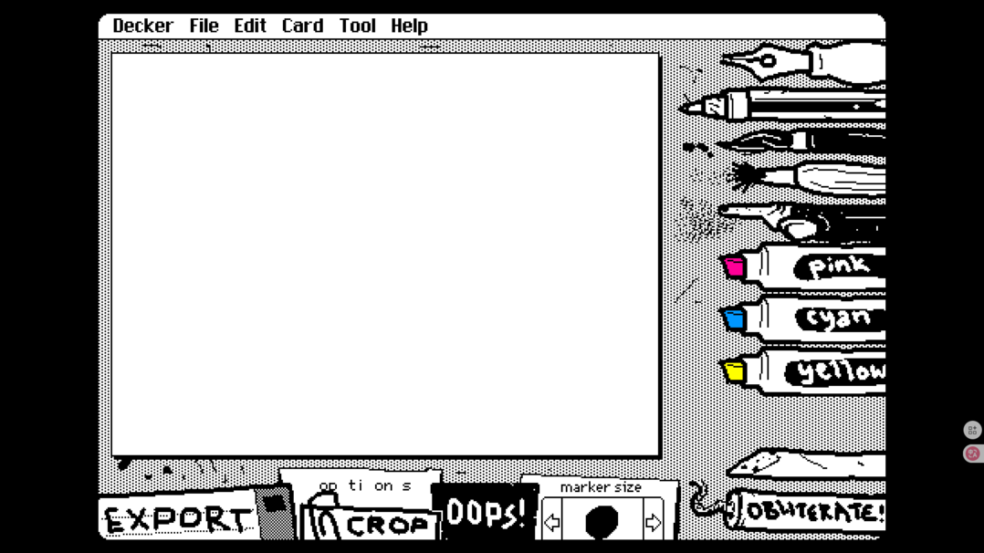 Wigglypaint 是一款使用 Decker 开发、生动活泼的绘画程序,与 Shake Art 和 KidPix 有显著的相似之处。