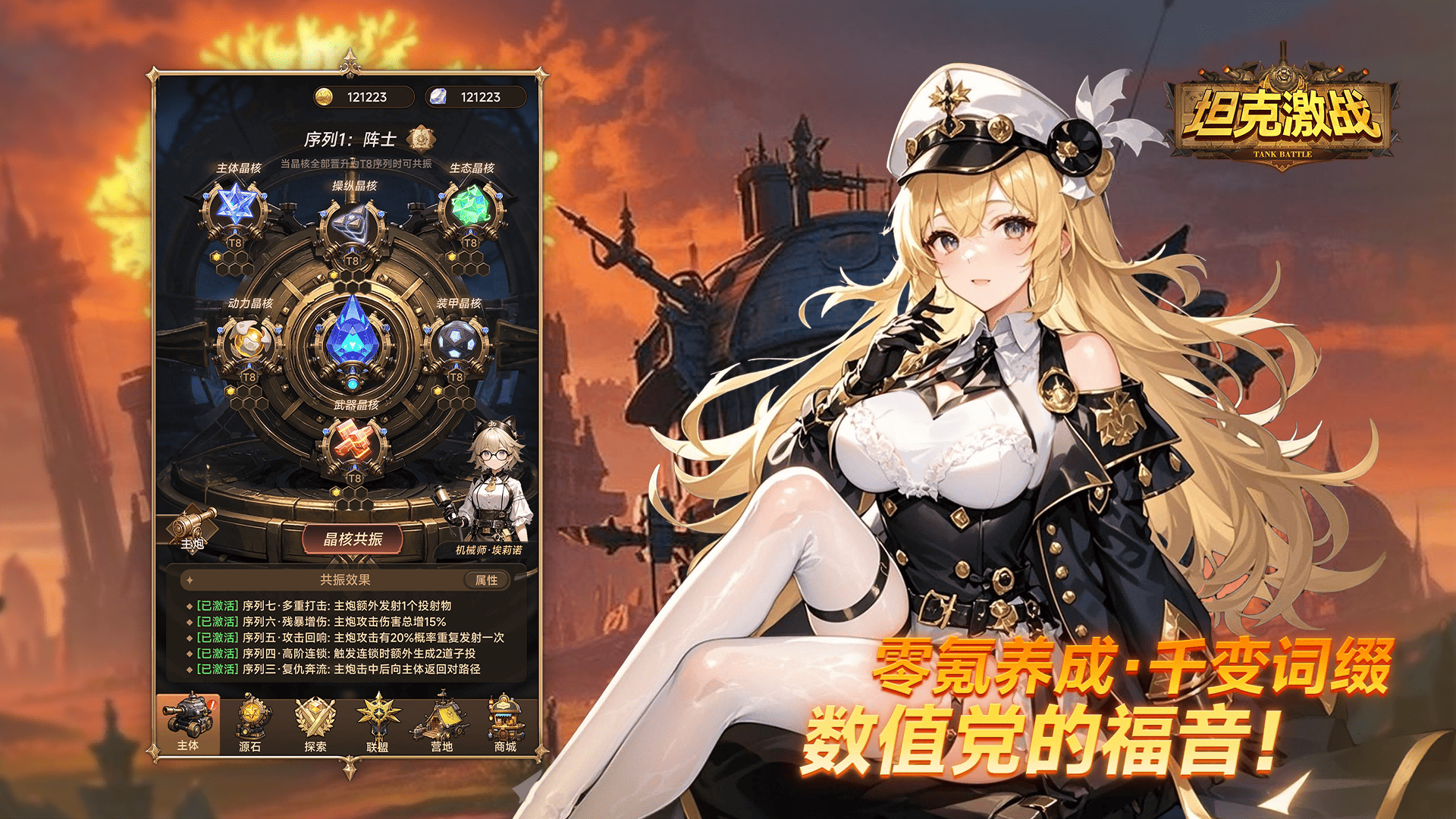 “坦克激战”的战斗并非反复使用多个技能打一轮循环输出的模式,而是强调对单一核心机甲的特性进行增幅,主要围绕没有冷却时间的机甲攻击来进行输出。游戏中的哨塔可以通过串联结合,实现技能效果和形态的改变,同时也能对机甲进行大幅度的强化。通过各类机制组合和探索,所有的提升项均能反馈到机甲上而不会浪费,且每个人都能自由定制出最适合自己的构建方案。