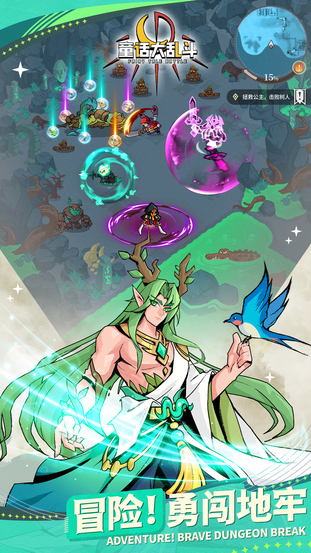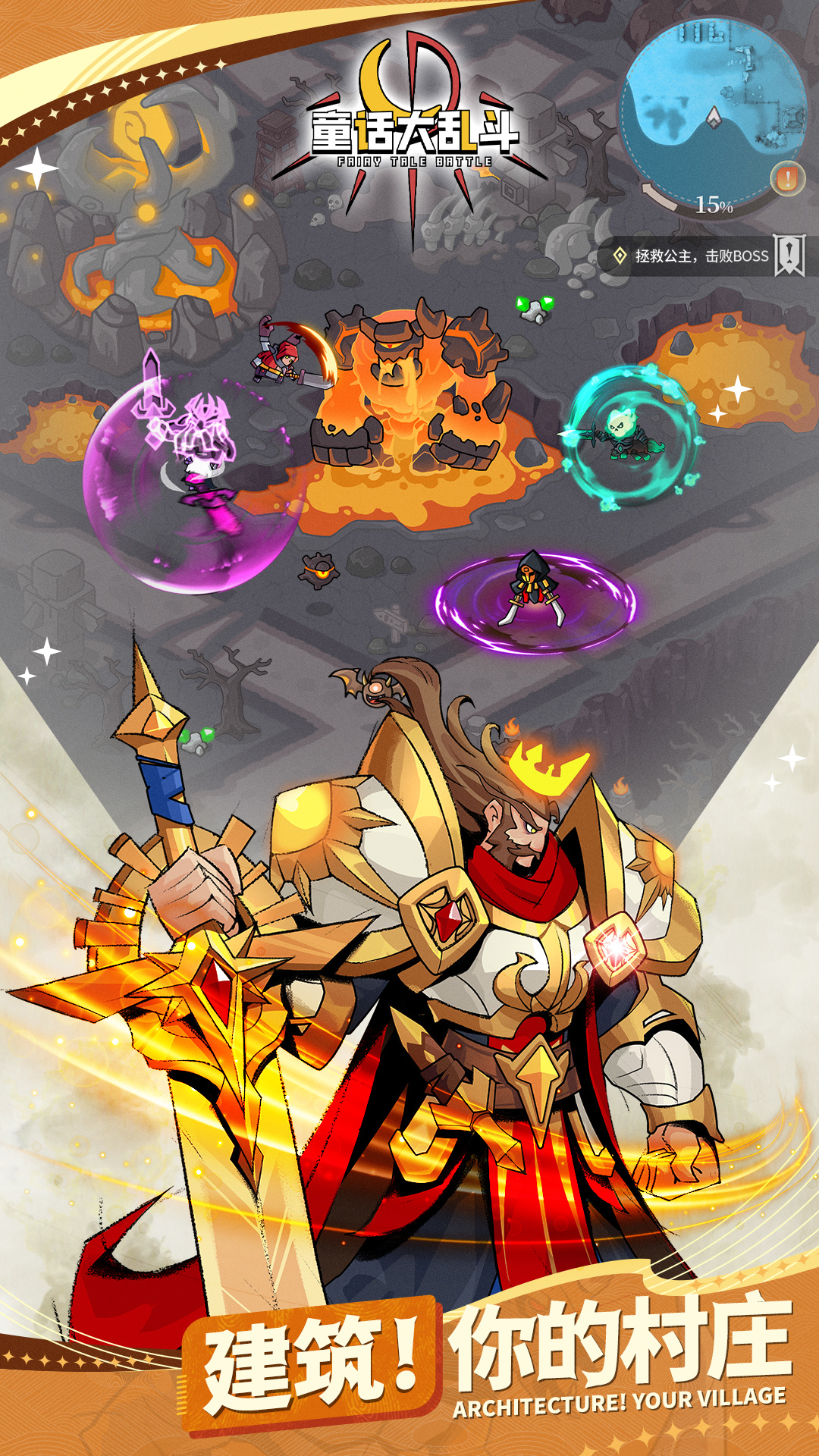 《童话大乱斗》是一款休闲放置异世冒险RPG手游。多种元素冒险地牢关卡,收集建造村庄,招募和培养使用各种技能的传奇英雄!力求为各位冒险者打造一个可以尽享酣畅战斗的冒险世界!