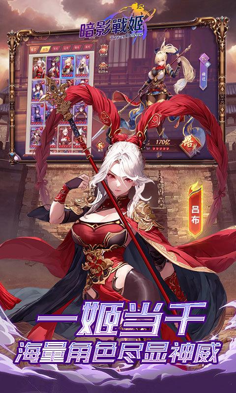 大厦将倾,黎民有倒悬之急,正是英雄保家卫国之时!三国塔防策略放置手游《暗影战姬》0.1折震撼来袭!您将与三国传奇武将携手共战,拯救苍生,利用独特的兵种优势以及致命的武器技能消灭潮水般涌来的敌人!精致的人物配合炫酷的技能,为您打造超强的视觉享受!游戏内置福利开箱,闯关可得大量宝箱,超高几率开出完整武将!还能叠加放置收益,闯关护肝两不误!紧张刺激的狭路攻防,策略烧脑的阵容组合,畅快解压的塔防体验正在等候您的到来!