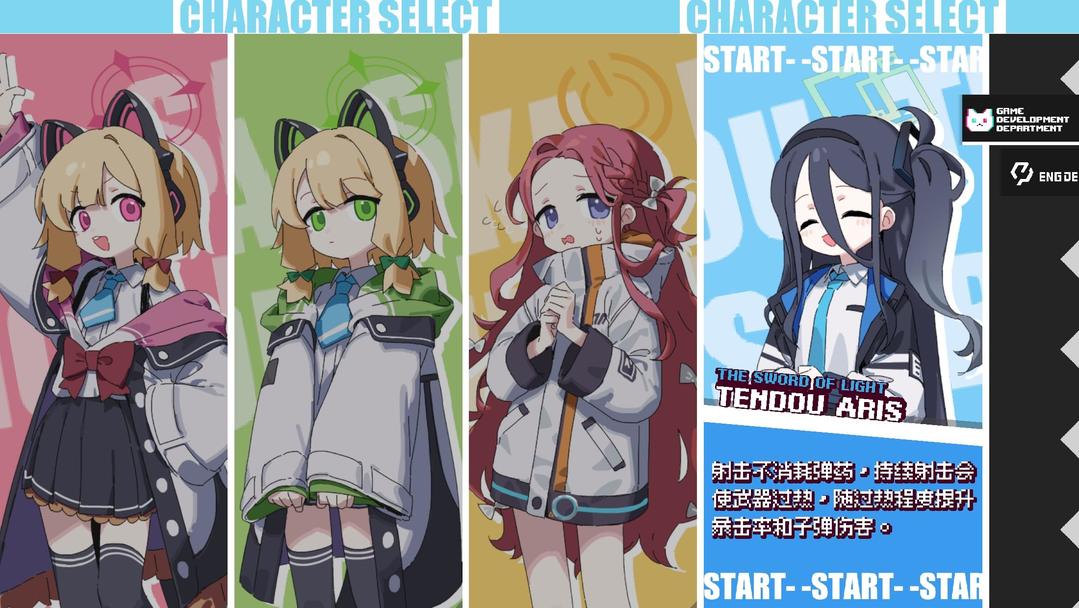 蔚蓝档案的同人像素游戏,能操纵可爱的学生进行像素射击,每个角色有着不同的武器