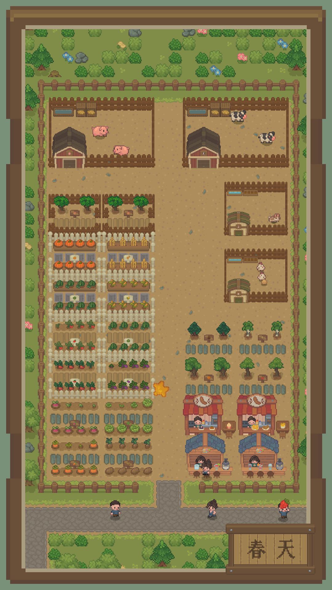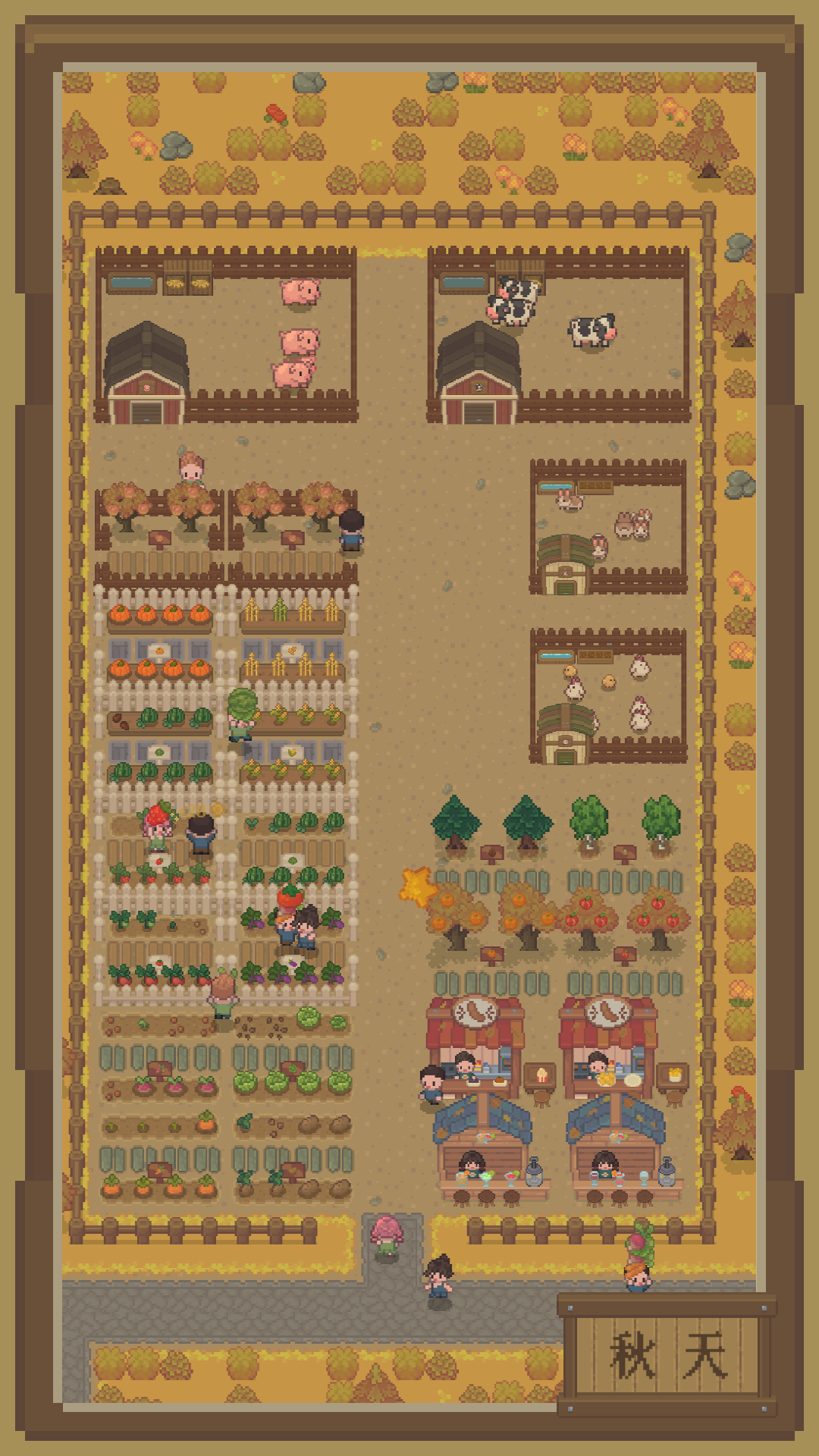 在这个属于你的农场里自由种植农作物、养殖动物,并且装饰你的农场。一边经营农场一边感受昼夜变换、季节更替!