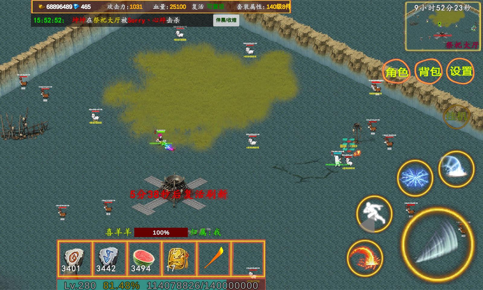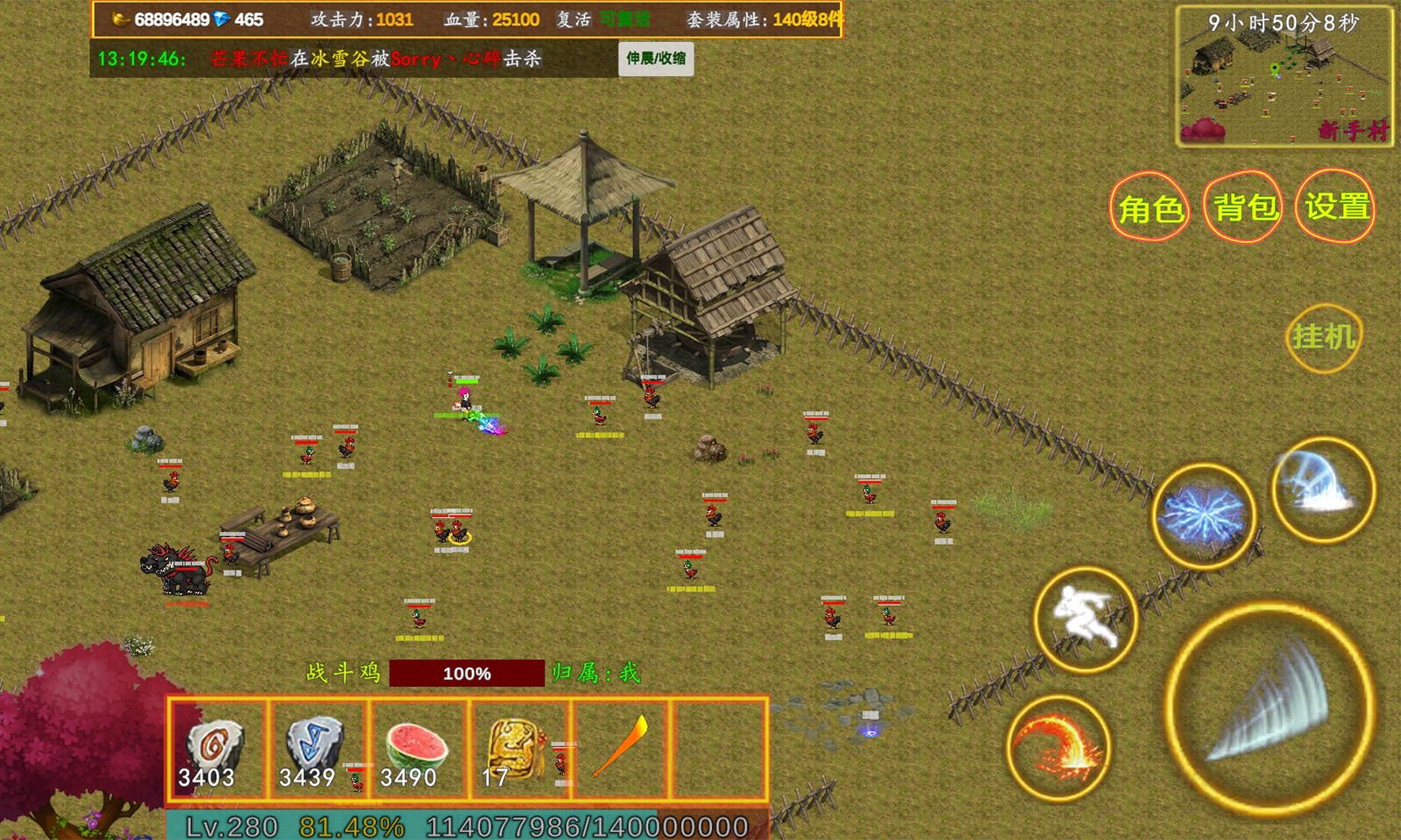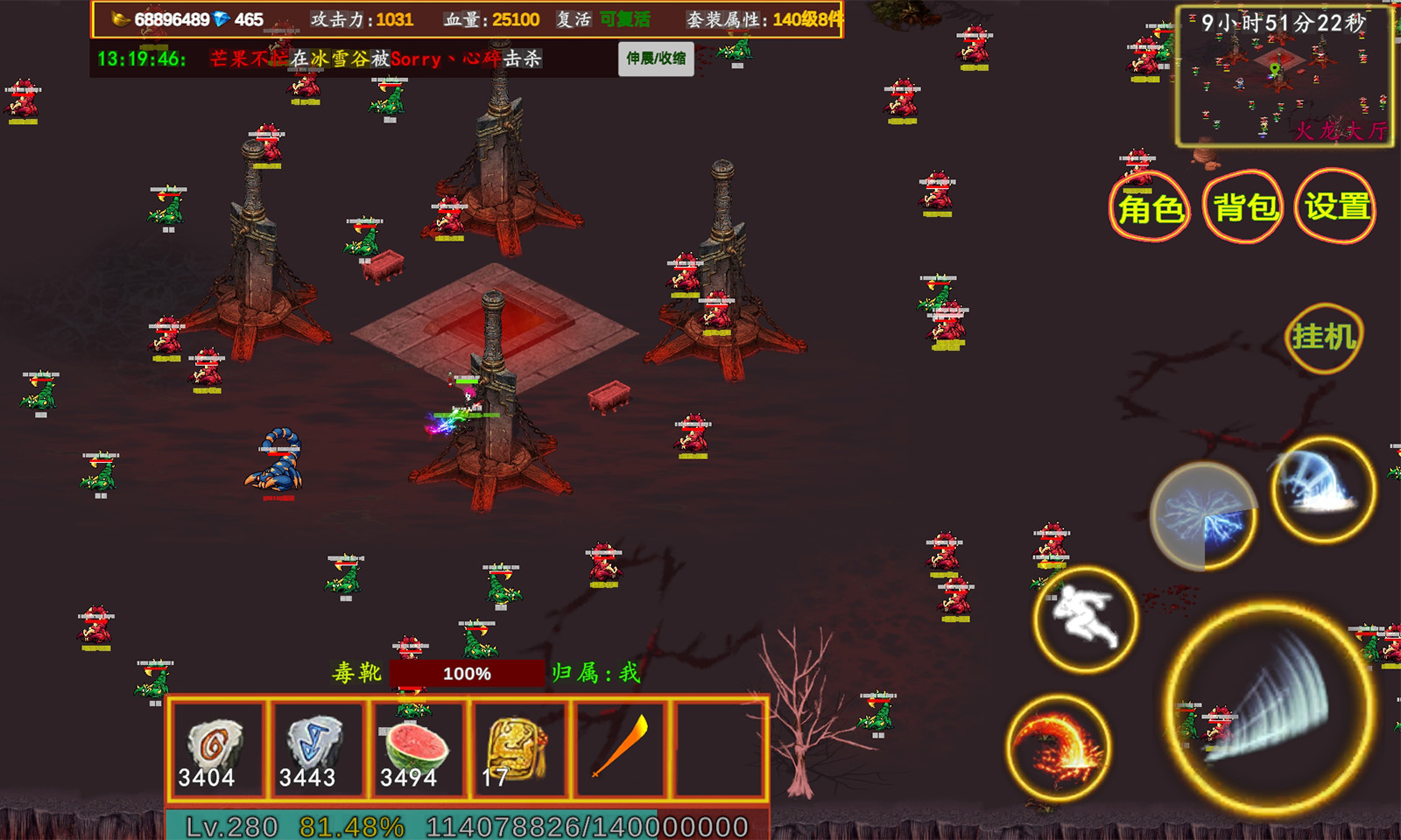 一款单机传奇题材的手游,游戏中没有广告,没有充值,可以强化装备和升级技能,时间到了后可以攻沙。