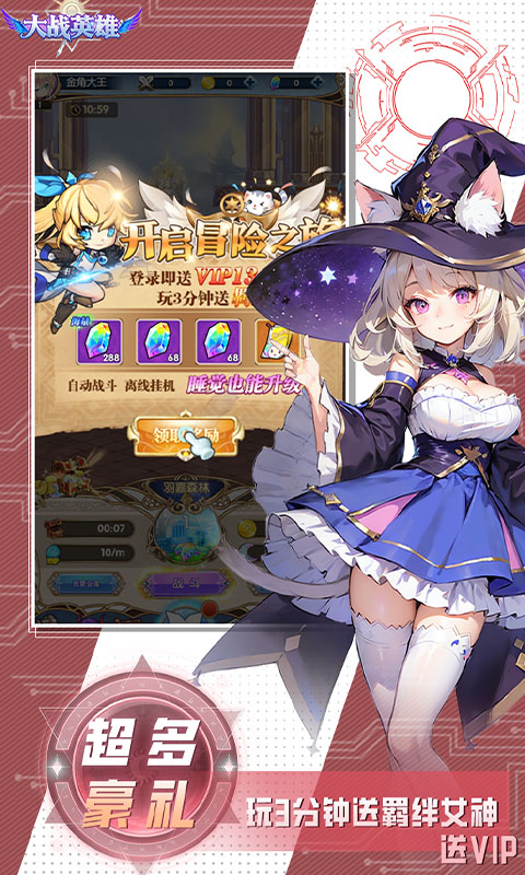 游戏主打 “放置不肝 + 福利拉满”,竖屏操作单手就能玩,离线也能疯狂收割资源;五行阵营克制策略拉满,搭配海量英雄养成路线,零氪也能打造专属 T0 阵容!更有 0.1 折永久特权、每日 648 代金券、9 个客服专属礼包码等豪华福利,上线即巅峰,轻松解锁竞技乐趣~