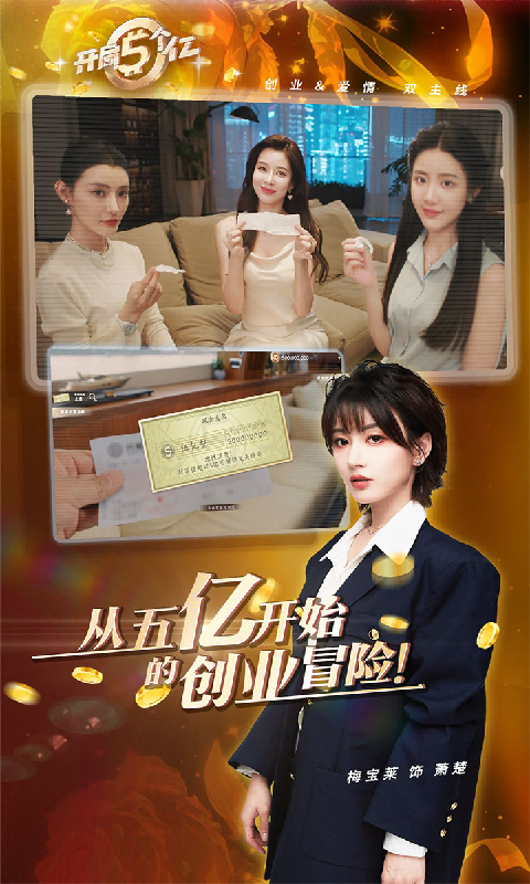 玩家将从五亿的启动资金开始,展开创业和恋爱的双重主线,根据玩家投资决策,形成不同的财富收益,进而影响女主的感情结局。注:商场诡谲,请认真区分她们是真心爱你,还是爱你的财富。
