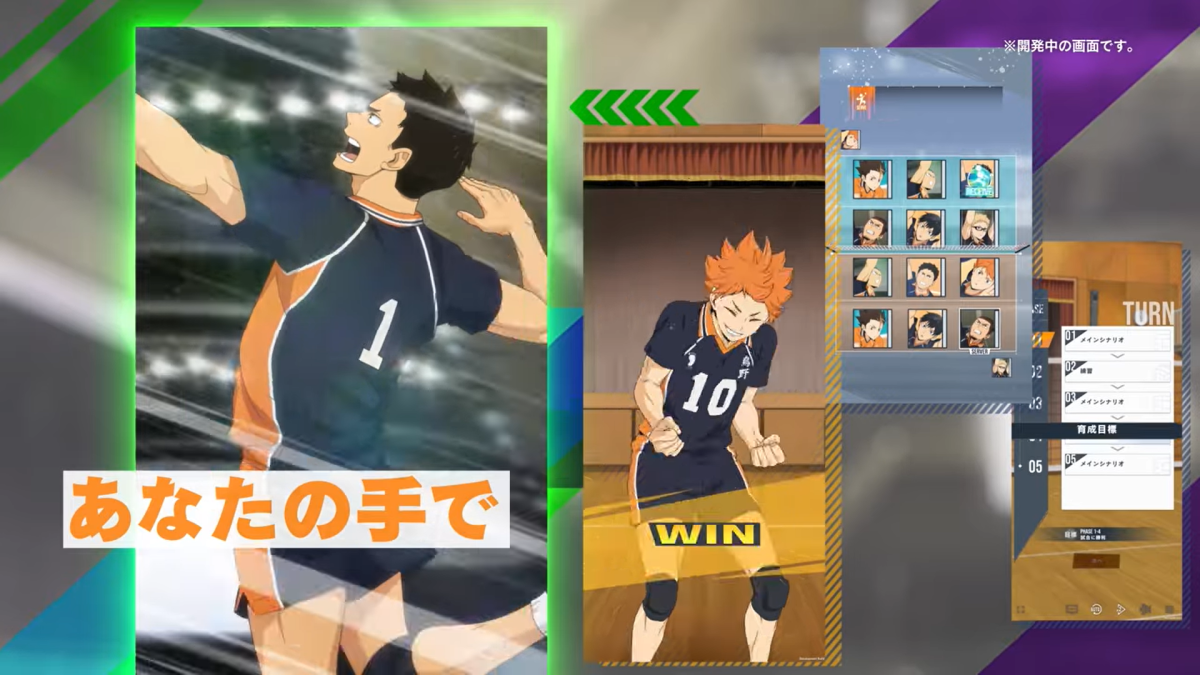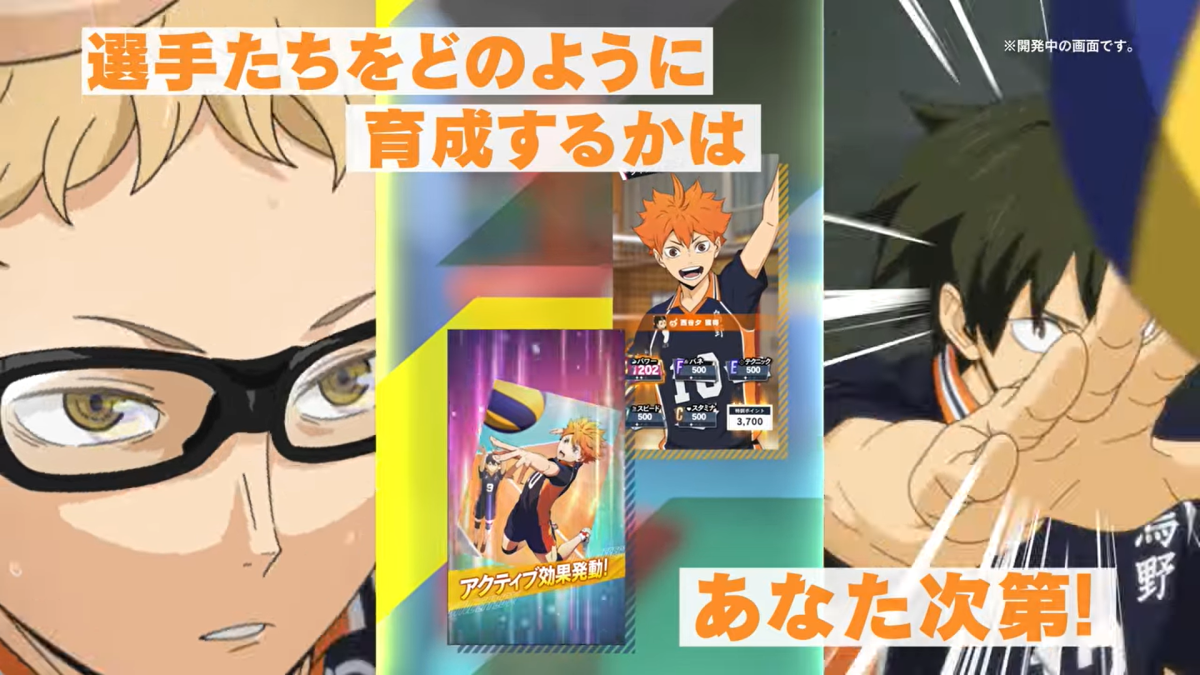 以「只属于自己的、以顶点为目标的故事」为宣传标语,预定作为动画《排球少年! ! 》的首款正统养成游戏推出的新款智慧型手机游戏。本作除了有全新的 2D 动画&插图,语音也是重新录制。选手们的培育方针全由玩家决定。决定想重点提升的能力值来安排训练菜单吧。接着就以培育完成的选手编组出自己专属的队伍参加比赛,以 ”顶点” 为目标吧。