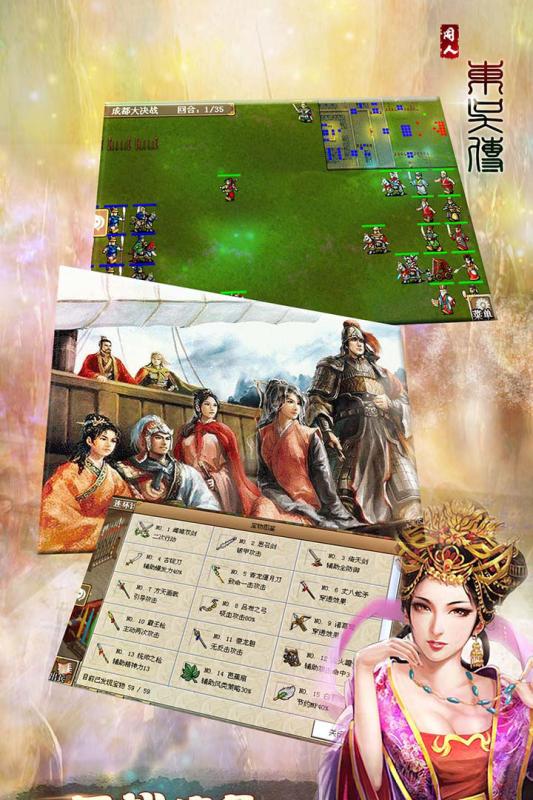《三国志东吴传》是一款考验玩家策略的经典三国题材战棋游戏,为玩家开启全新的三国时代。玩家将扮演三国东吴豪杰孙权带领三国猛将谋士西联刘备,北抗曹操,驰骋疆场,开拓疆土。 自古英雄出少年,孙权年轻有为,胆略超群,曾经仅以五万人于赤壁之战大破曹操,败曹操之锐气,曹操也不禁感叹,“生子当如孙仲谋”! “遥想公瑾当年,小乔初嫁了,雄姿英发!