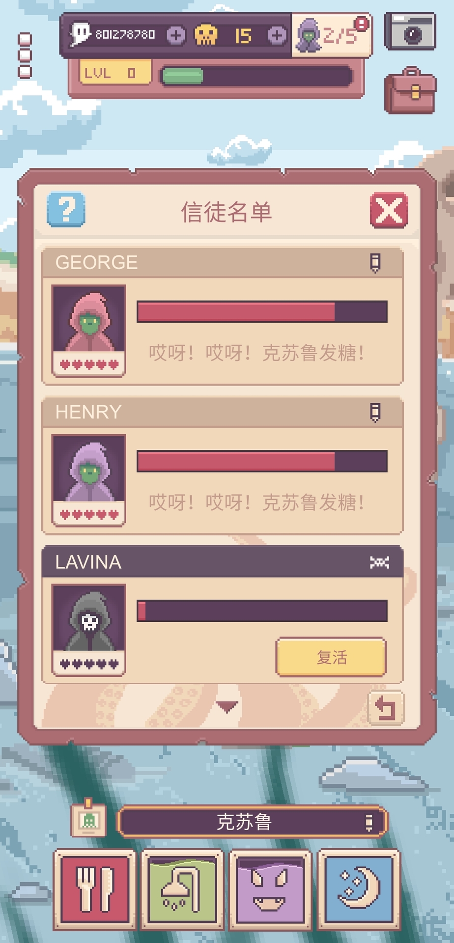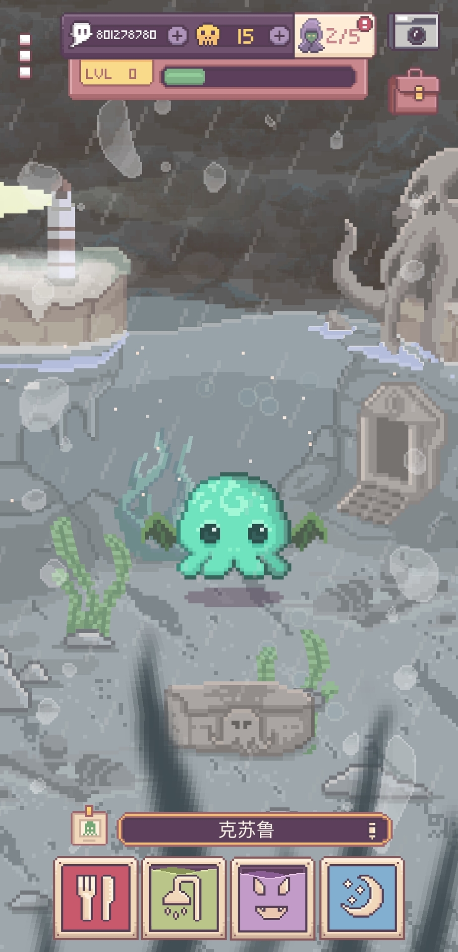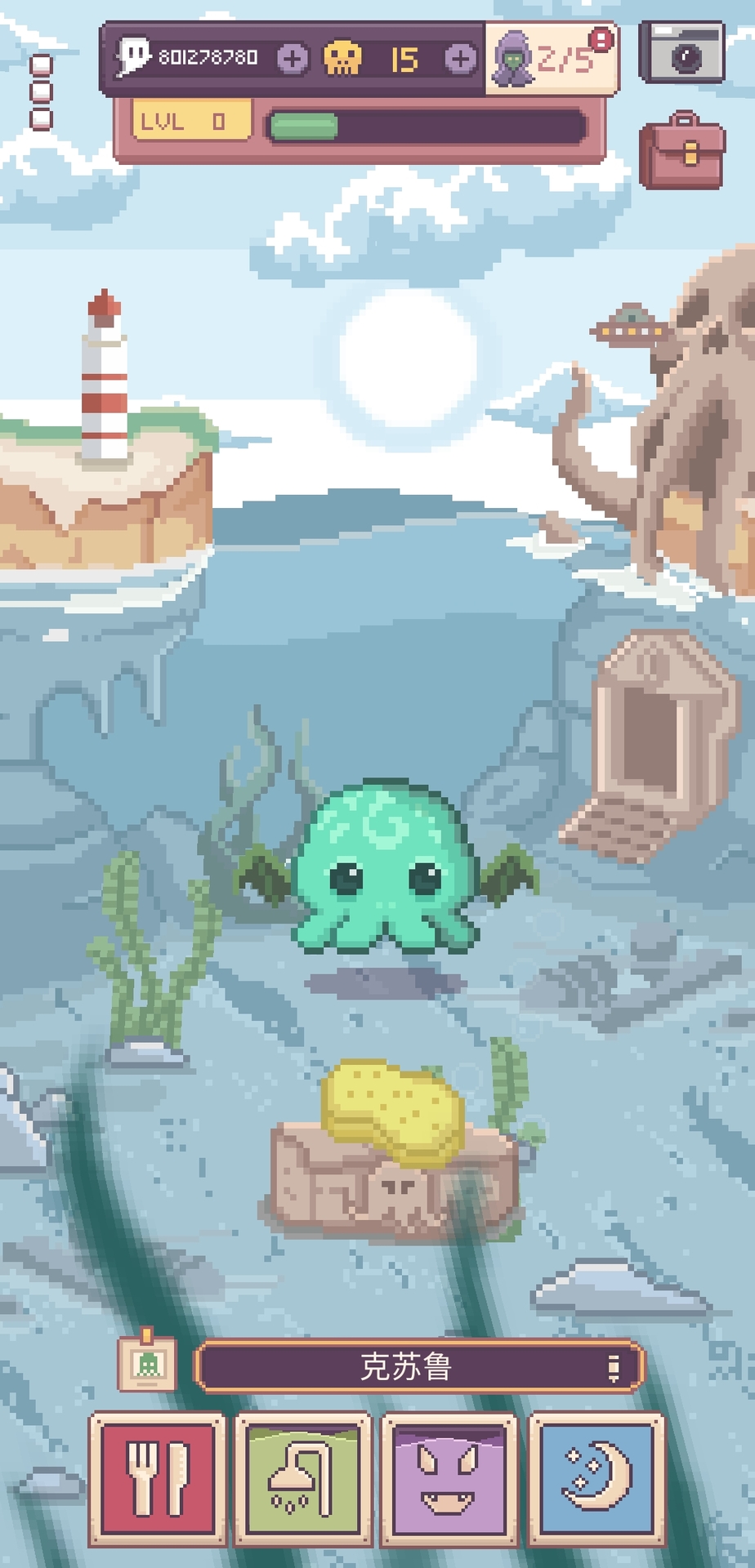 比如:^(;,,;)^克苏鲁? 他是古典恐怖故事作家洛夫克拉夫特(Lovecraft)创作的神话体系中的邪神之首,伟大的旧日支配者,也是传说中的章鱼怪(°ー°〃)。无论你是洛夫克拉夫的书迷亦或是第一次念到他的名字,这款像素风格的口袋宠物游戏将为你带来重返童年般的乐趣。
