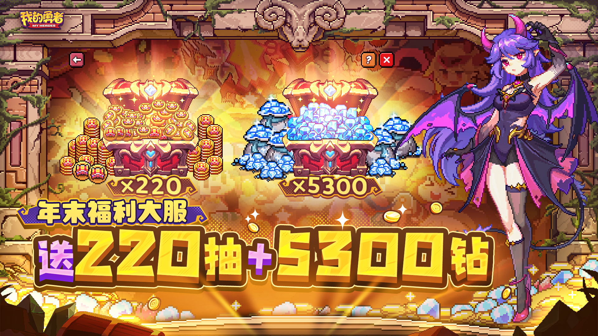 年度福利大服—新服专属福利,活动时间内提升勇者等级可领取70抽黄金武器币奖励
