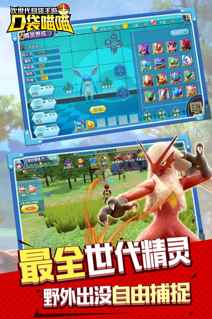 首款全新3D高清写实风格口袋手游《口袋喵喵》即将重磅来袭!360度视角,打造全方位沉浸体验!采用无缝地图设计,1:1还原真实的口袋世界!除了经典的掌机1v1对战玩法外,精灵巨大化、神兽融合、限时狩猎等创新玩法,将带你感受绝无仅有的全新口袋游戏体验!各式各样的PVE、PVP及丰富精彩的活动福利都已蓄势待发!让我们向着更高的目标出发,在《口袋喵喵》的世界里任意冒险吧!