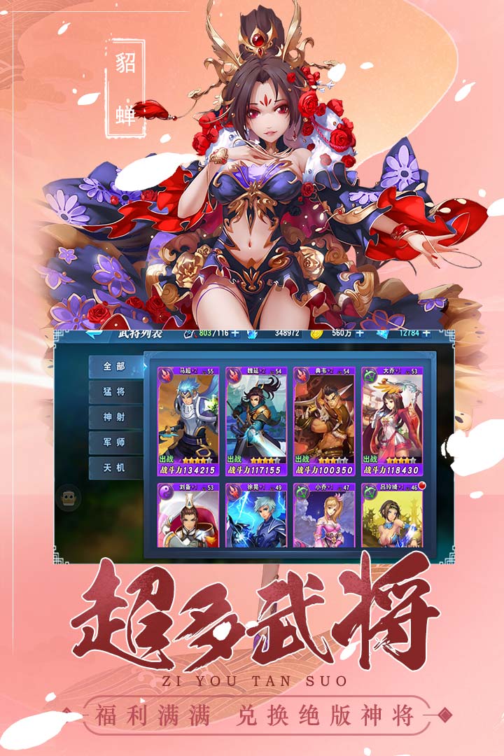 《魔战三国online》在群雄纷争的三国时代,通过招募各个三国名将、不同类型的士兵,再以不同的阵容搭配征战八方,从而完成自己的主公大业。在游戏中,玩家可以招募到魏、蜀、吴、群四大国家中的名将,训练不同类型的士兵,带兵领将征战天下,遇见各种三国奇遇事件,挑战各地群雄,为武将士兵打造合身的装备,利用犀利的阵容搭配和技能释放时机来战胜四方强敌,最终在一方天地中成为一代名主。