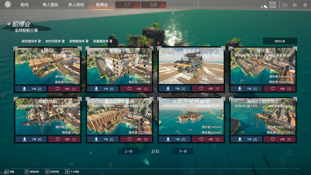 【创意搭建】用丰富的载具配件实现你的无穷脑洞。想要你的作品被更多人知道?去船博会分享吧,让你的船舰成为经典!