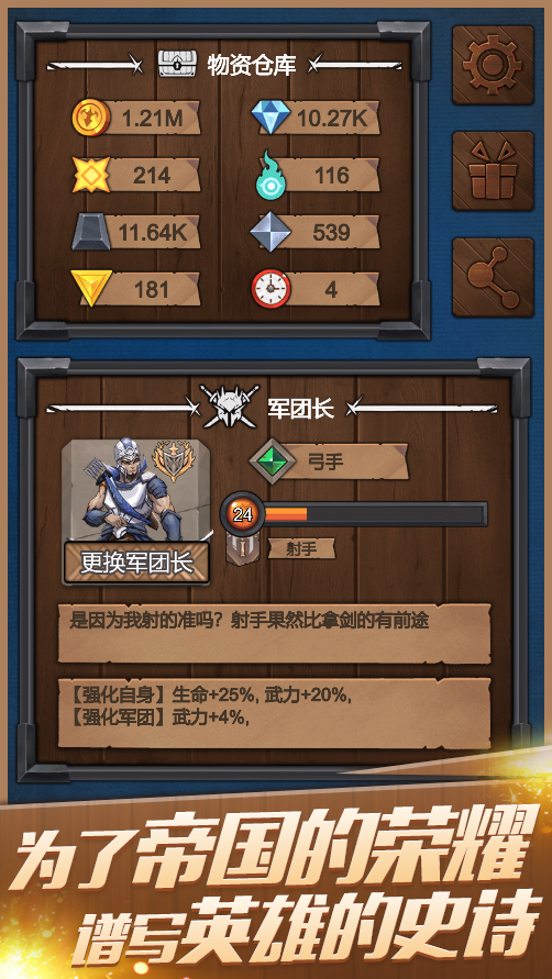 而你将带领军团,从绿色的贫民窟处启程,到巨人或者冰雪的国度。不断赢取胜利而最终踏上神殿之巅。