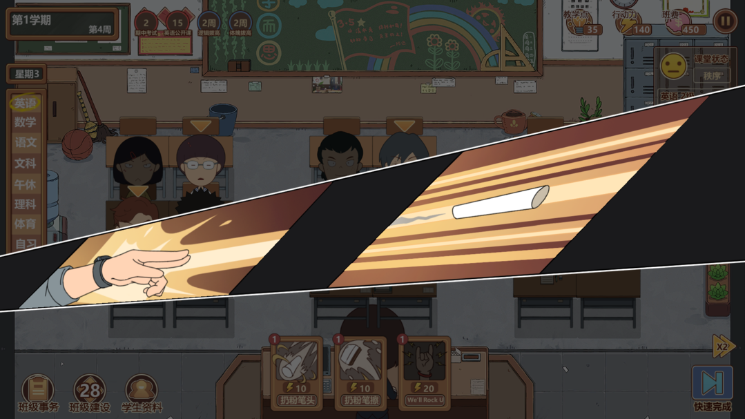 在游戏里可以通过「传授」给学生开小灶,提高能力。每周开「班会」,整顿学生风气。