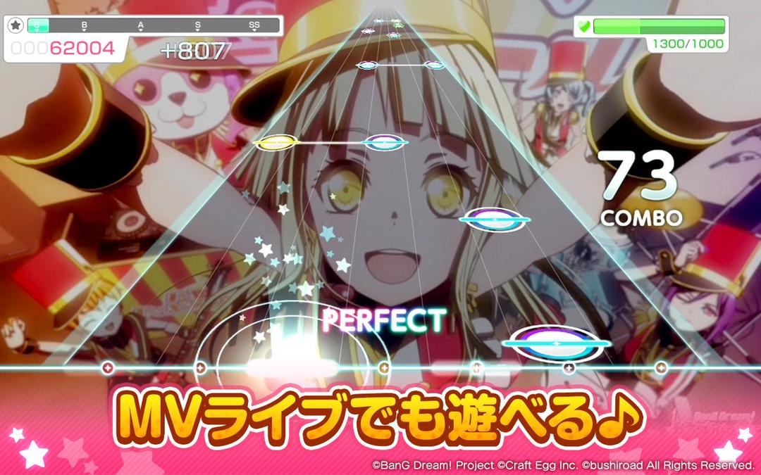 本作以「角色和现实 Live 联动」的次世代少女乐队企划「バンドリ!」为背景制作,是一款融合了音乐节奏和 ADV 育成要素的手机游戏。游戏支援最多 5 人同时进行游戏,而且还会有大量大家熟悉的动画歌曲登场。
