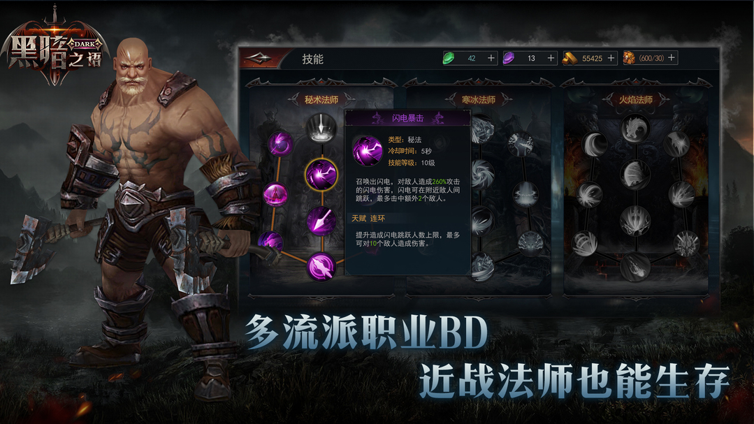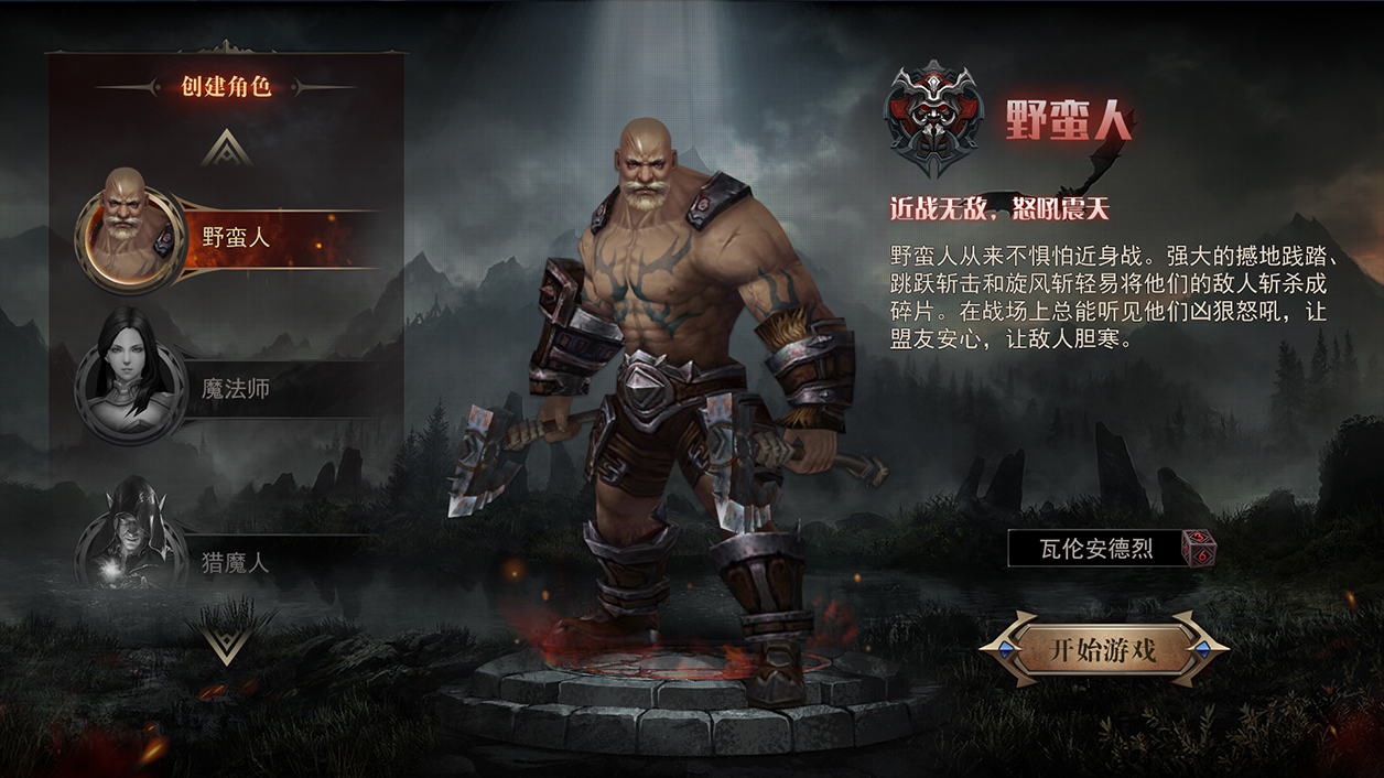 野蛮人、战士、法师、弓箭手、亡灵法师。五个特色鲜明又熟悉的职业。在穿着高级装备的前提下,单个角色可以通刷多数地图。但在一些特殊的场景的,需要多个职业间的搭配才能通关!