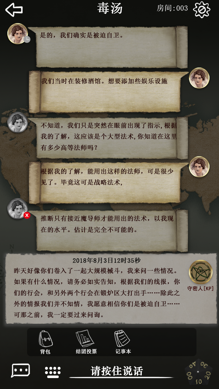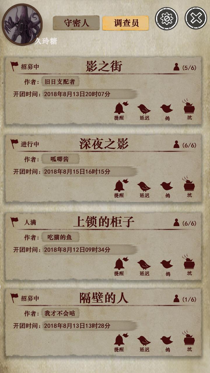 《克苏鲁的卷轴》巧妙地将这样一个传统型桌游移植到了移动端,打破距离限制,天南海北的同好可以随时随地开团。同时网络社交的属性能够有效消除陌生玩家之间的隔阂,能够帮助玩家更快熟悉、更快融入剧情、更快体验到游戏的乐趣。