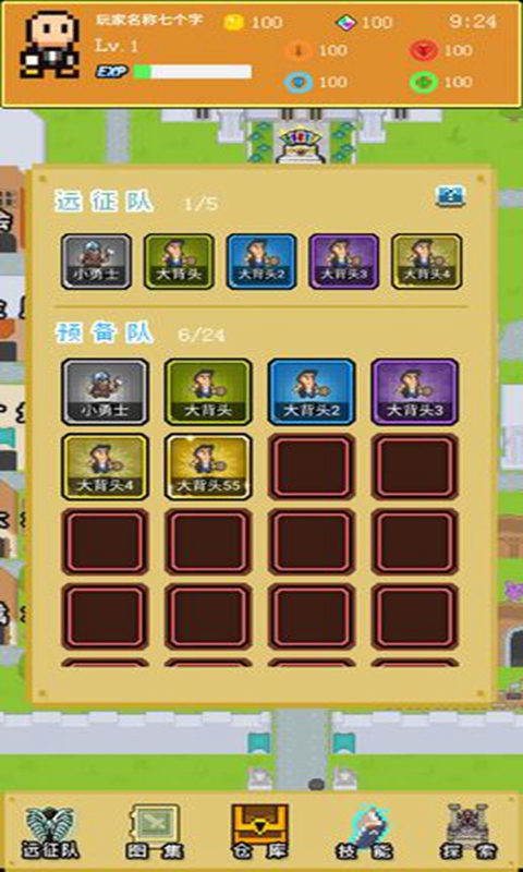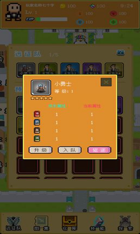 一款放置类游戏,带上你的远征队去猎去更多更多的装备吧!