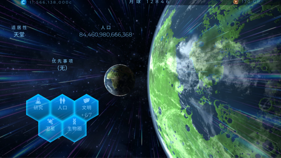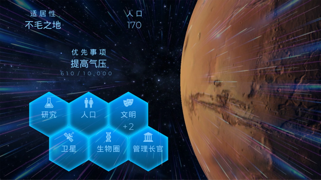 - 地球化您的星球,更改每个世界的特定属性,支持人类生活,这包括气压、氧气、海平面和生物质