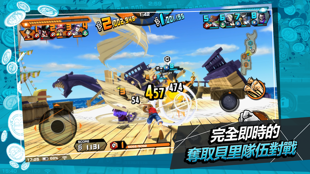 ●操纵充满特色的《航海王》角色,在队伍对战中取胜