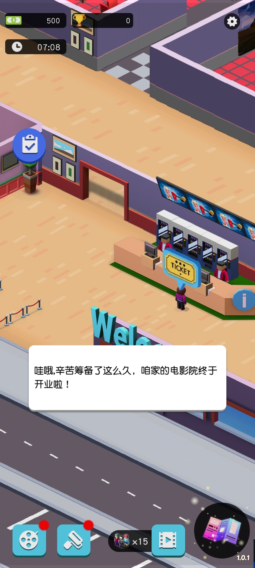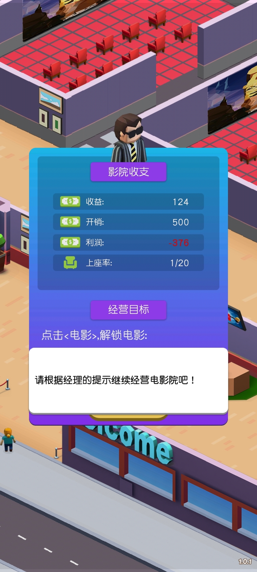 播放电影,雇用员工,赚更多的钱,升级以建立更多的电影院并保持爆米花顺畅。