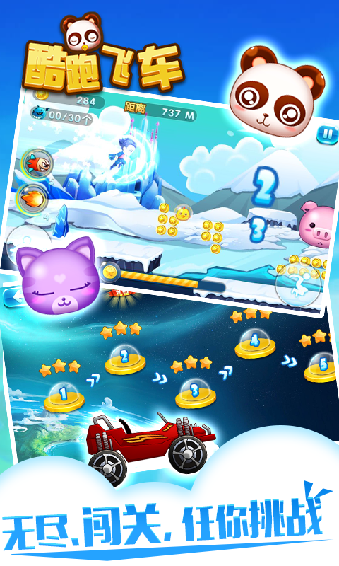 激爽夏威夷、冰封雪国、夜景城市多样场景缤纷展现,9大关卡3大BOSS,更有多达20种的精灵小怪等你来战,更有超神战车助你到达实力顶峰,功能简单、快速上手,灵活控制,一重重令人意想不到的成就任务,燃起你挑战自我的熊熊信念。酷跑吧,少年!