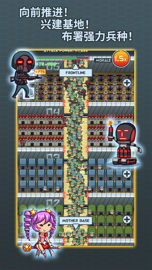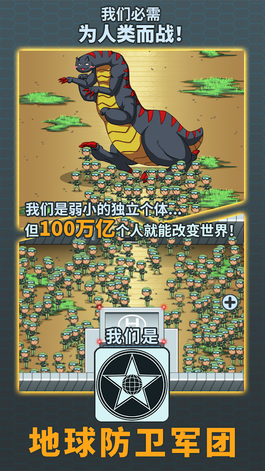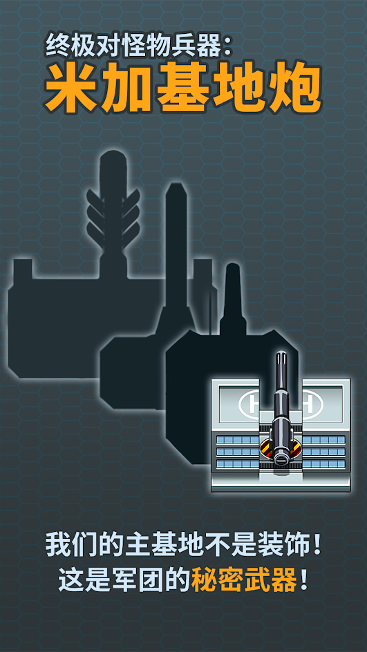 杀死怪兽,建做新的前线基地,训练更强大的士兵吧! 不要忘记制造人类的秘密武器,打出关键一炮!