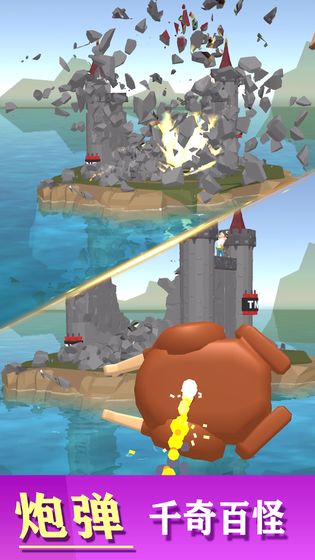 在本游戏中,船长收藏了各种各样的大炮和炮弹,让你畅快使用。跟随船长的航行,破坏形状各异的城堡,并看着它们轰然倒塌!