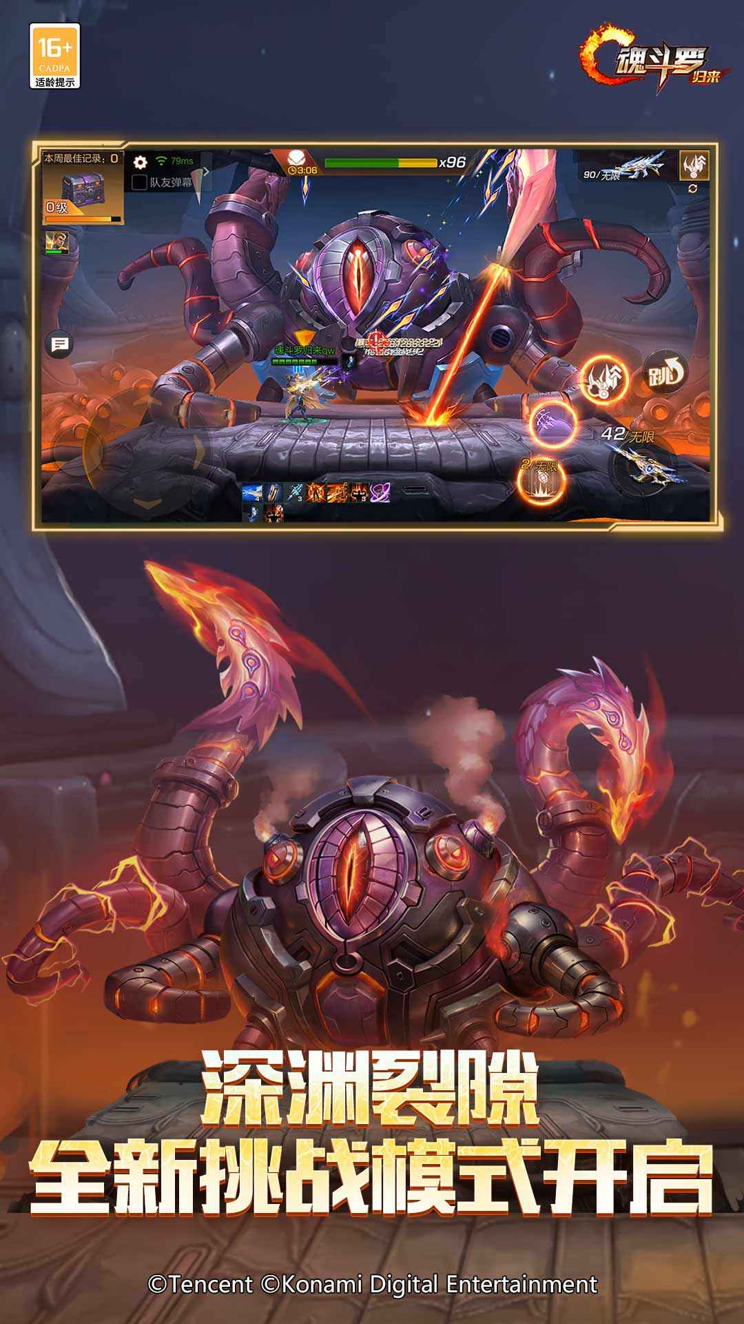 正统续作,革新射击!《魂斗罗:归来》是由腾讯联合日本KONAMI共同研发的横版动作射击手游。还原经典魂斗罗玩法,与兄弟一起挑战BOSS!创新添加PVP竞技实现1V1、3V3实时对战;丰富的弹幕及武器带你挑战万变战场;延续经典双人模式,全民组队火力全开!精英集结,王者归来,让我们一起战斗,并肩打通关!