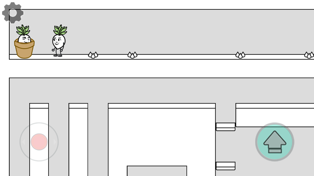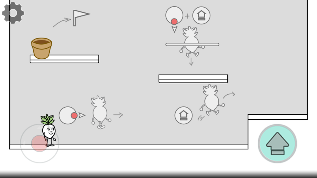 这是一个简单的平台跳跃游戏,玩家需要操作主角——一个萝卜,跨越路上的重重障碍,到达盆的所在处,并种到盆里(如果盆答应的话),目前共有10个关卡和2个游戏模式,普通模式通关后会解锁挑战模式。