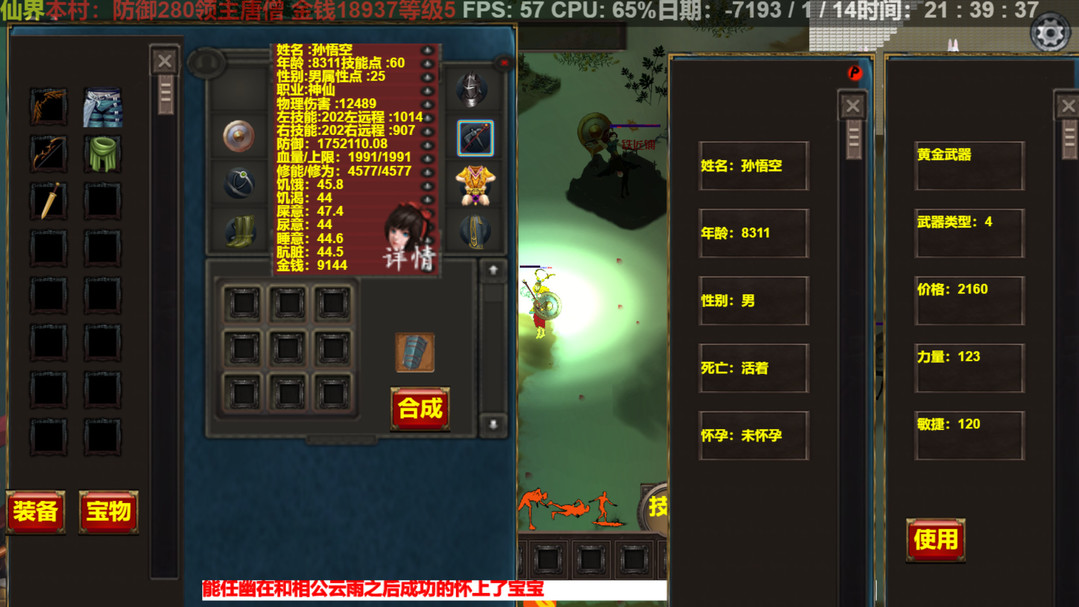 2:目前构建的框架包括 10种职业 随机人物占6种职业 固定人物为中国神话人物 神仙 妖怪 鬼 神兽,全人物角色与玩家控制人物有一样的各种系统 包括装备系统 技能系统 道具系统 疾病系统 生理系统,职业技能系统 人物关系系统,会根据角色的生理状态 心理状态 家庭条件 亲密关系决定他们的行为,