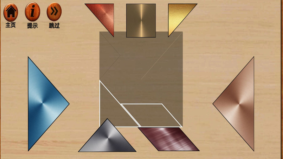 金属七巧板是一款拼装正方形的休闲益智游戏,把正方形的各块图形快速仔细的拼装在一起,不仅可以提高你的脑力,而且提升你的动手能力。其中丰富的色彩,众多的关卡,玩了这个游戏,你就是人群中最靓的仔,提升脑力,不断前进!!!