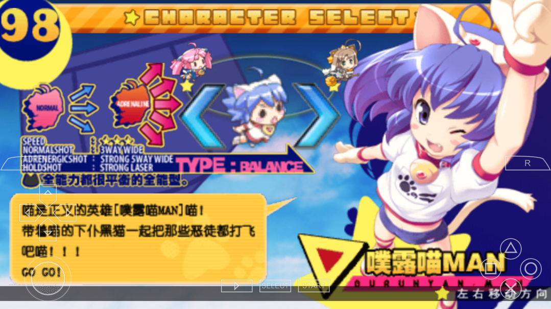 《出击!运动裤猫娘 携带版》是一款飞行类射击游戏,三个角色分别都有普通射击,前方一点激光射击,能量MAX状态射击和帮助角色的协助攻击几种攻击方式。