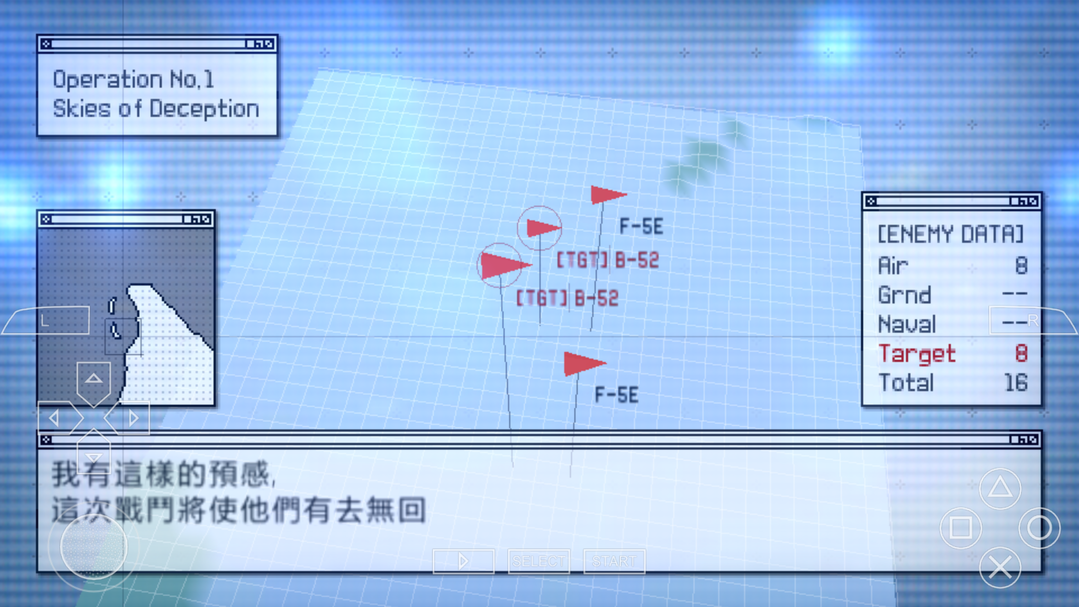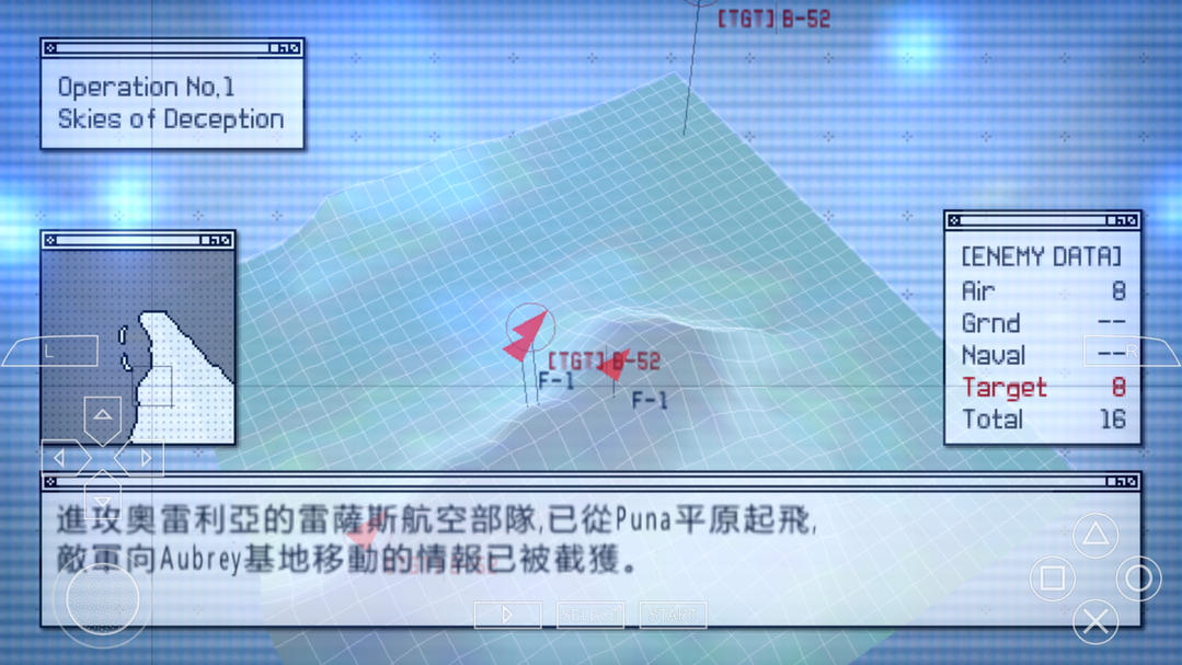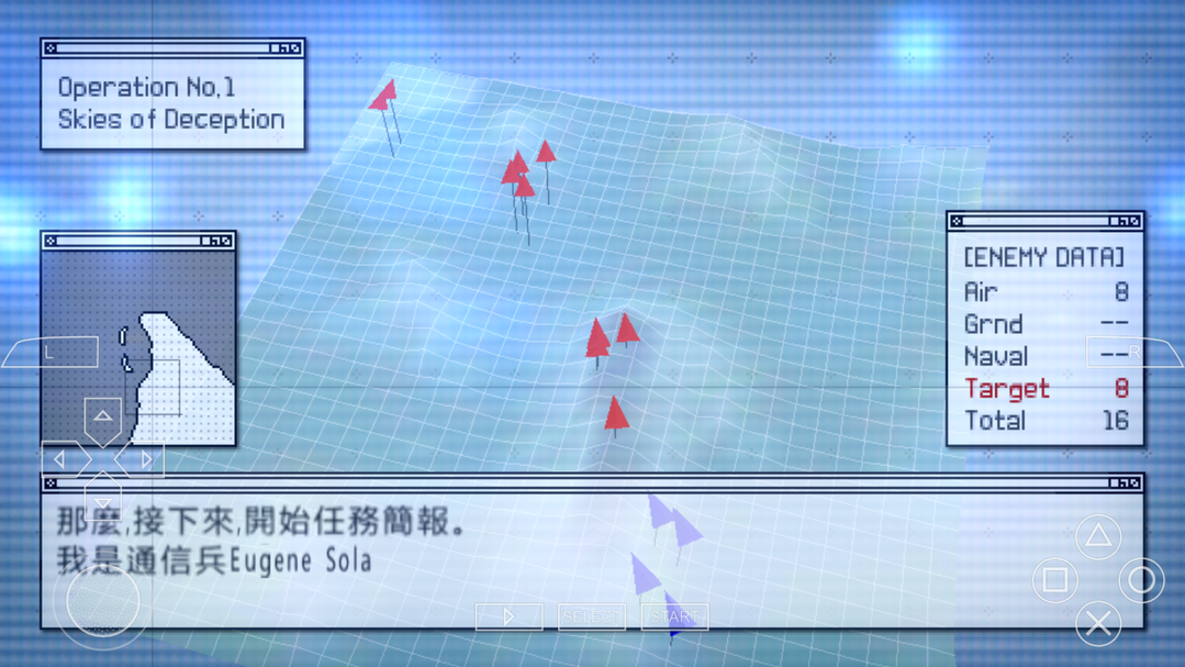 《皇牌空战X诡影苍穹》是由NBGI制作发行的一款飞行模拟射击游戏,《皇牌空战X诡影苍穹》是《皇牌空战》系列首款掌上型主机作品,藉由 PSP 的 3D 图形处理性能,呈现出不亚于桌上型主机系列作的全 3D 画面,描绘出细致的战斗机机体与广阔的场景地形。