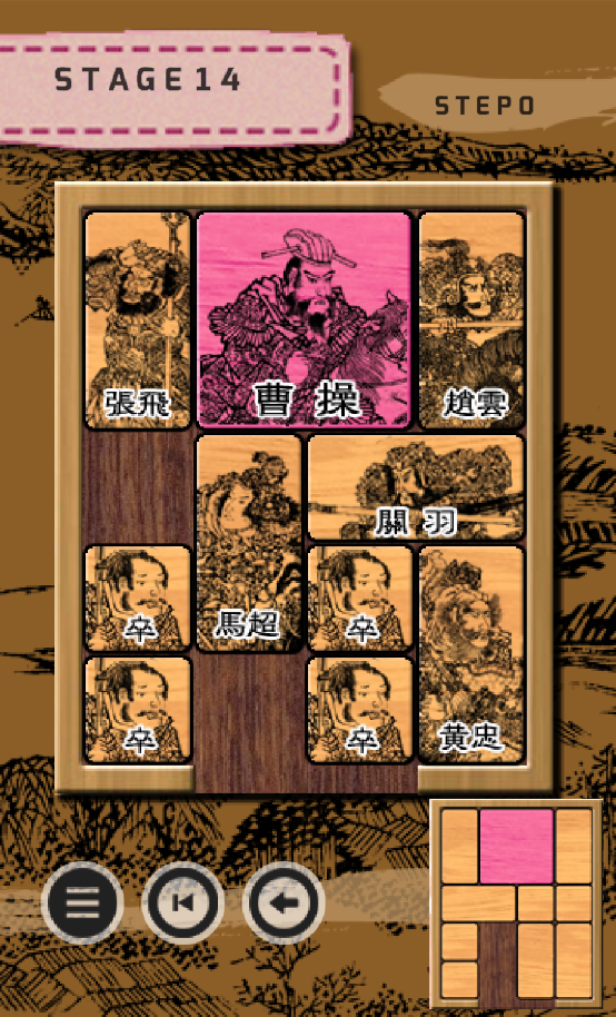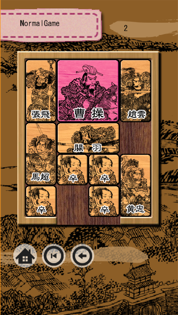 游戏者的任务是帮助“曹操”从华容道滑脱出去。