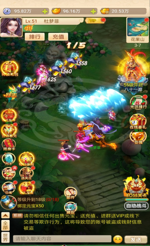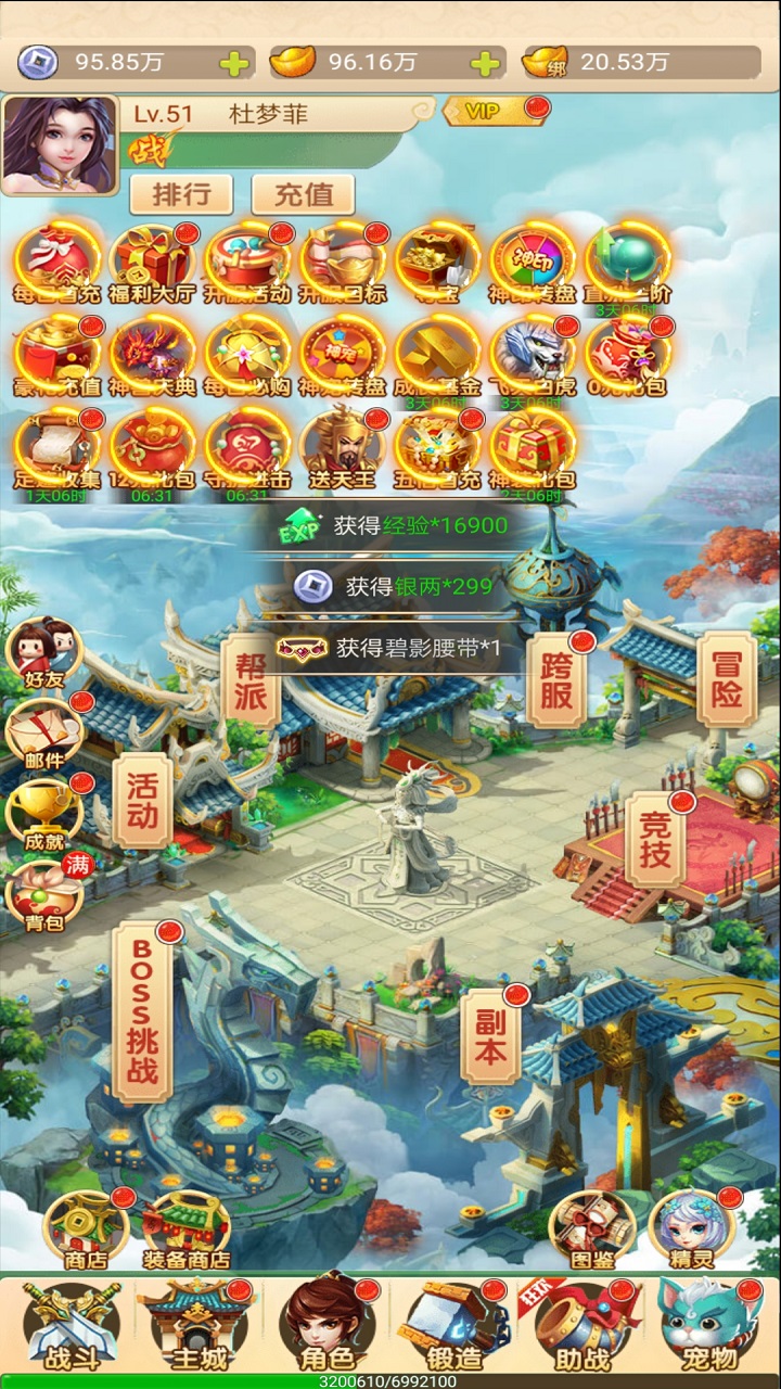 游戏内不仅有超凡之塔、挖宝、副本等日常任务,而且有竞技场、武道会、武者争霸、帮战、跨服争霸等PK玩法,更有帮派、师徒等社交乐趣。上百种特色玩法,让你享受无穷的西游戏魅力!