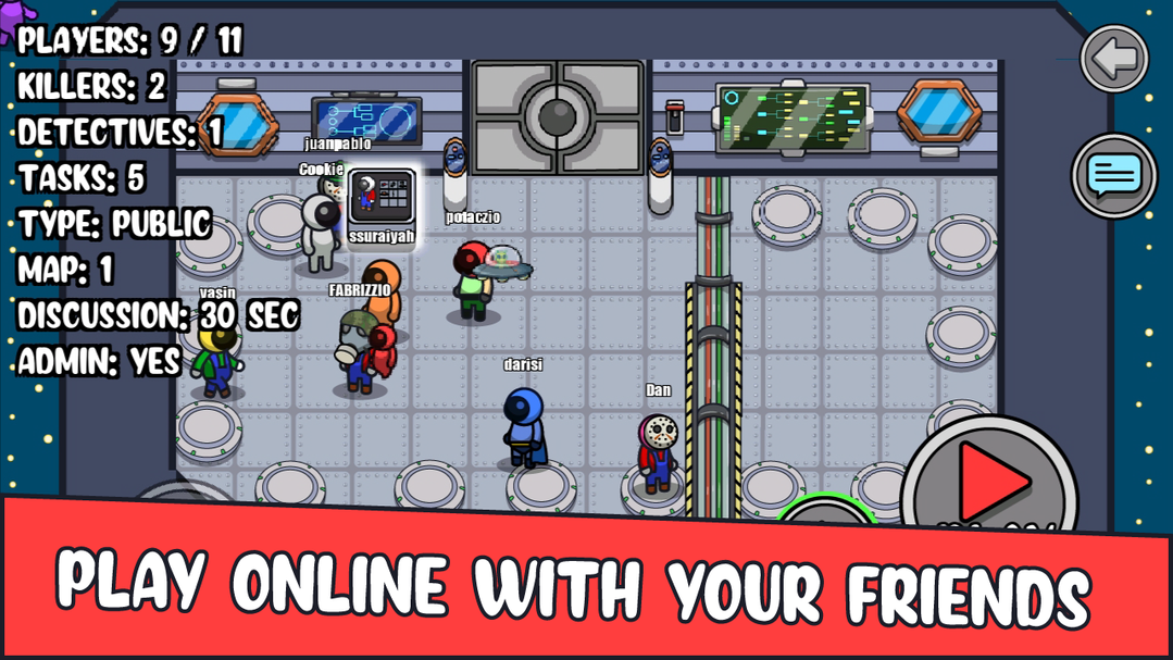 您可以在固定飞船获胜的同时与3-10名玩家在线玩,但是要小心并保持警惕,因为其中有一到两个凶手直到找到他们后才会停止!