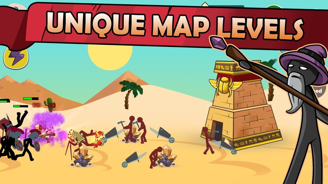 获得金牌,以招募更多的战士加入您的军队。可供您使用的:矿工,火柴人战士,弓箭手,斯巴达人,巨人,甚至是弹射器。通过提高火柴人的技能和武器来升级您的军队。加强堡垒。为火柴人的传奇之战做好准备。战斗的结果仅取决于您。