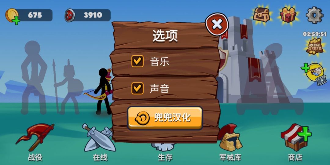 与来自世界各地的玩家或在线好友对抗。显示谁的火柴人军队更酷。
