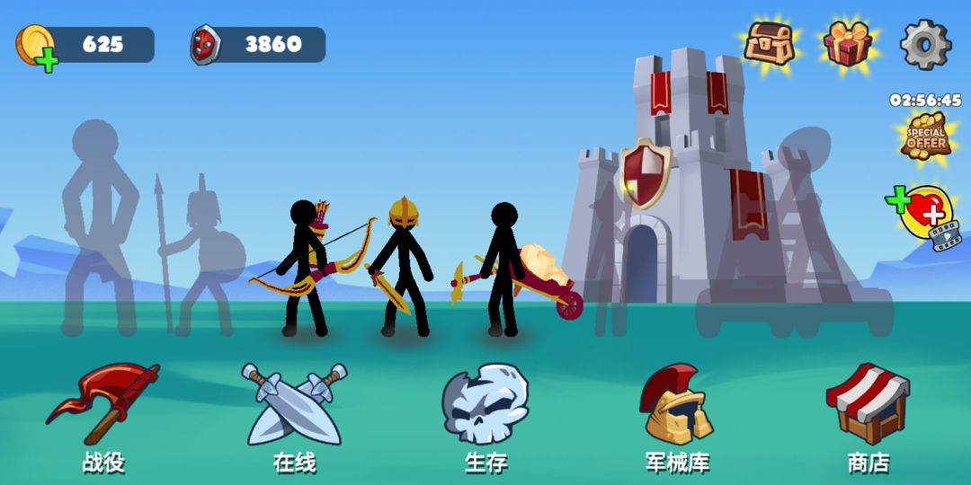 获得金牌,以招募更多的战士加入您的军队。可供您使用的:矿工,火柴人战士,弓箭手,斯巴达人,巨人,甚至是弹射器。通过提高火柴人的技能和武器来升级您的军队。加强堡垒。为火柴人的传奇之战做好准备。战斗的结果仅取决于您。
