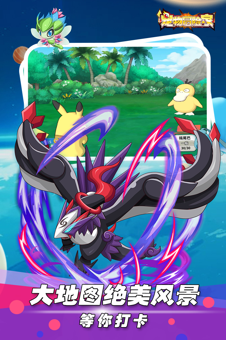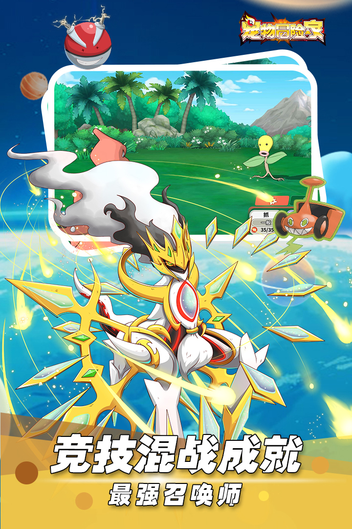 《宠物冒险家》是一款集精灵收集养成、地图探险、策略对战,完美复刻口袋妖怪经典回合玩法的MMORPG手游。3A级品质地图渲染、经典日漫画风精灵表现、电影级特效展示,带你体验别样的精灵世界。游戏内收录口袋妖怪8个世代近900只精灵,600多种技能,属性克制、特性发动、精灵孵蛋等经典玩法等你来体验。野外捕捉、狩猎场狩猎,体验全新的精灵收集方式。竞技场、本服联赛、跨服联赛、公会战、联盟杯赛等PVP玩法应有尽有,点燃你的竞技热情。