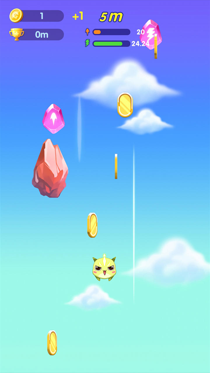 游戏免费提供多种皮肤,控制萌萌的角色,突破自己的极限,一飞冲天,飞的同时需要多开闪电障碍,来达到更高的高度